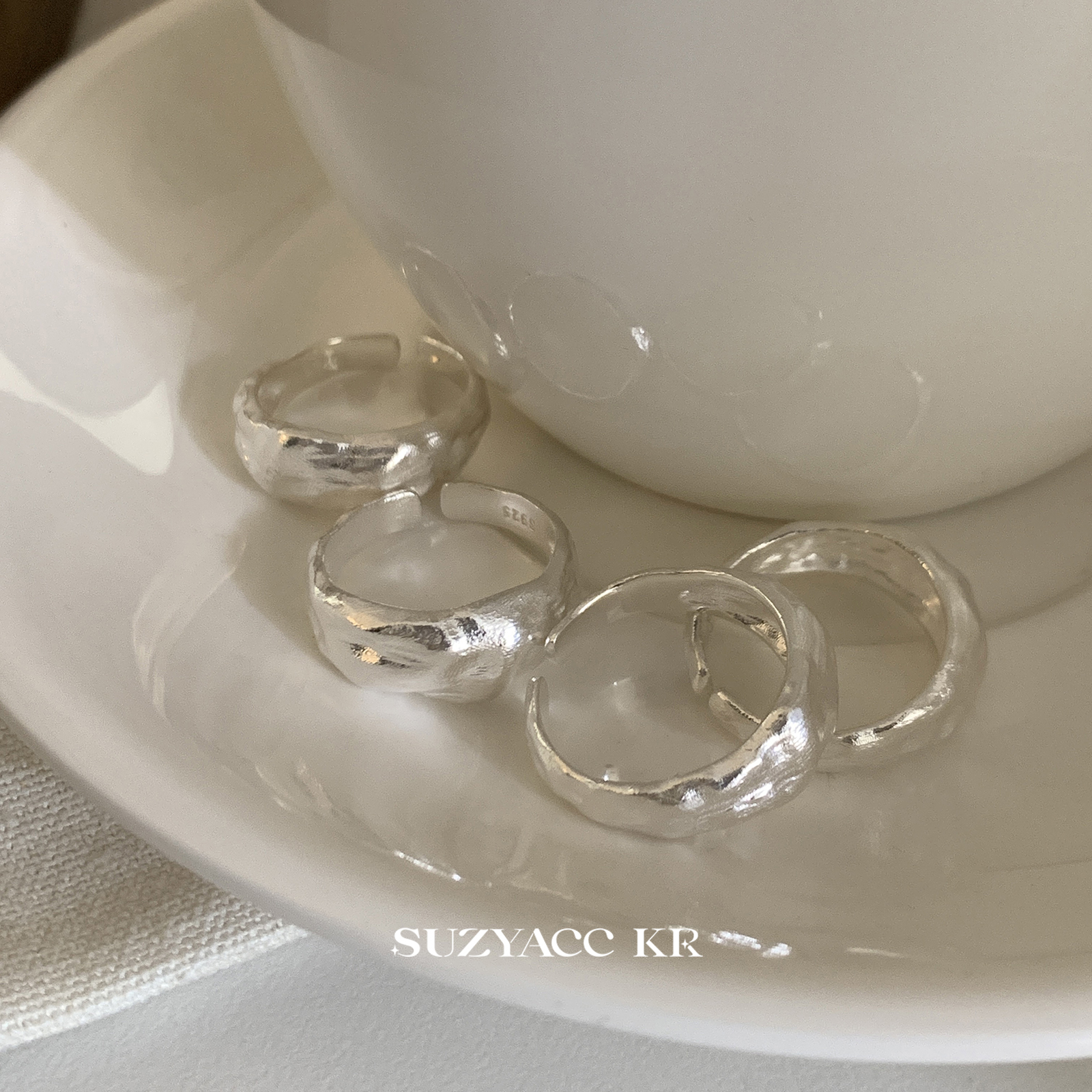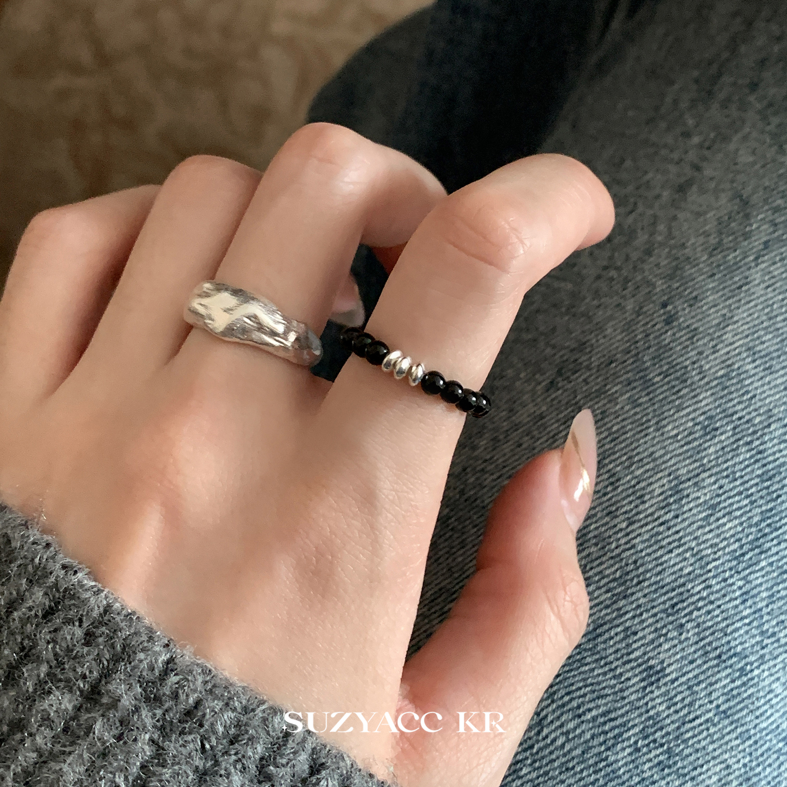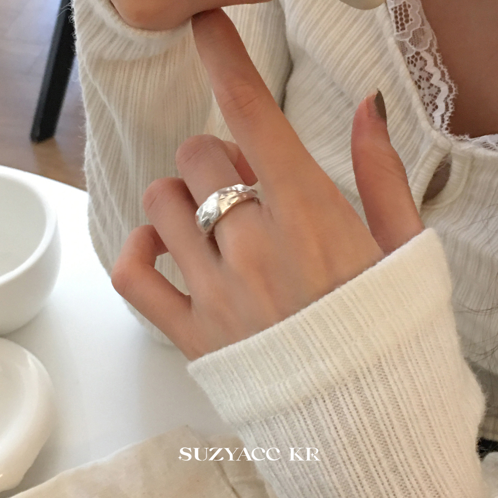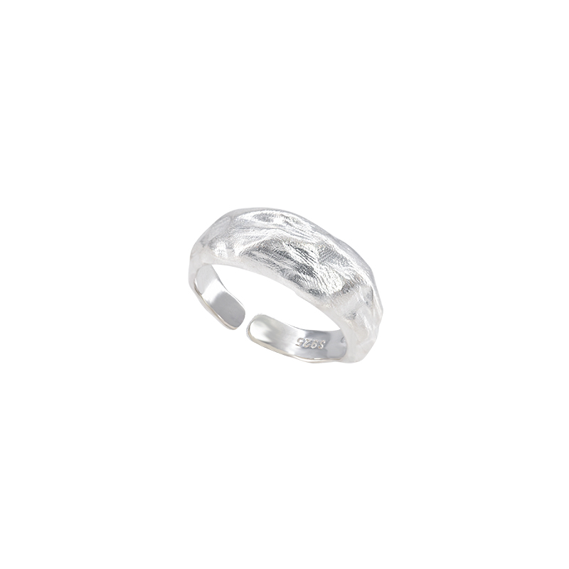 suzyacc kr纯银哑光拉丝不规则熔岩戒指轻奢高级感食指戒可调节