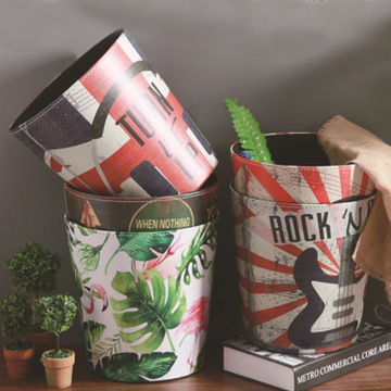 欧式皮革垃圾桶家用客厅复古无盖收纳筒饭店卧室酒吧装饰时尚纸篓