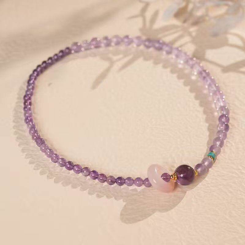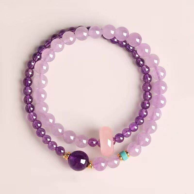 2026爆款上岸紫色双圈手串女轻奢设计薰衣草叠戴手链好运寓意闺蜜