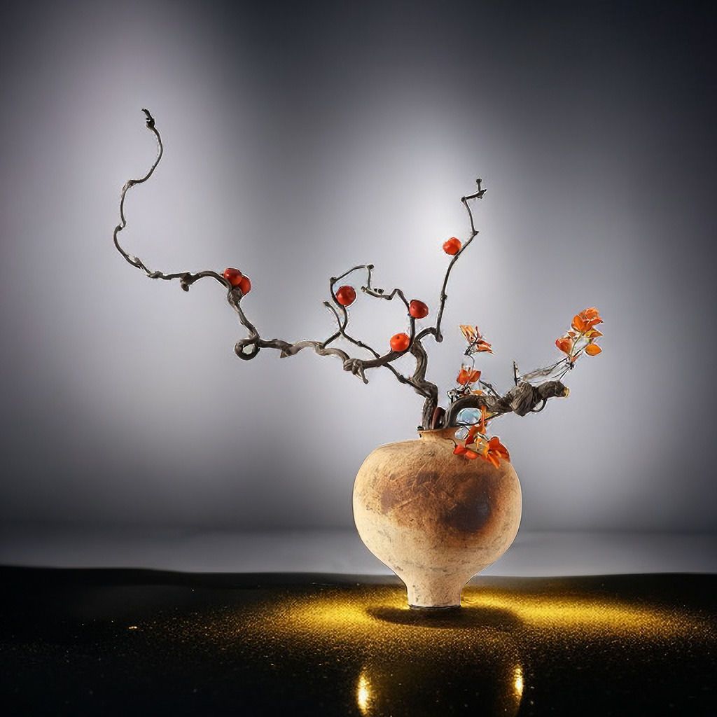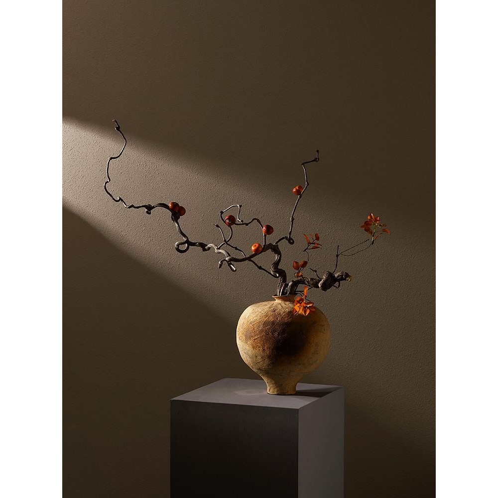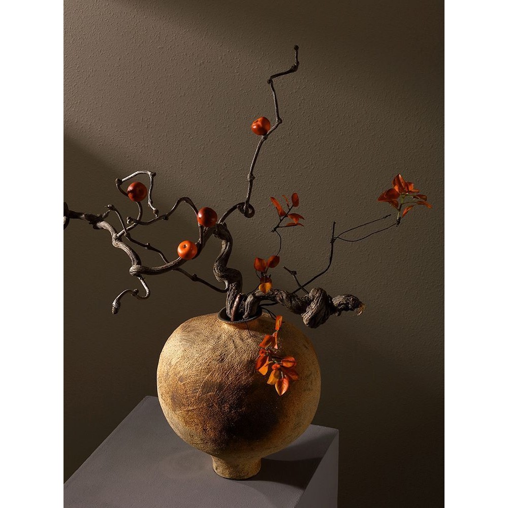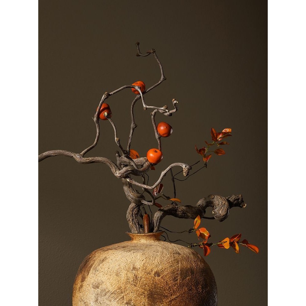 侘寂风枯枝花艺复古中古风桌面高级花瓶陶罐仿真红果中式高端摆件
