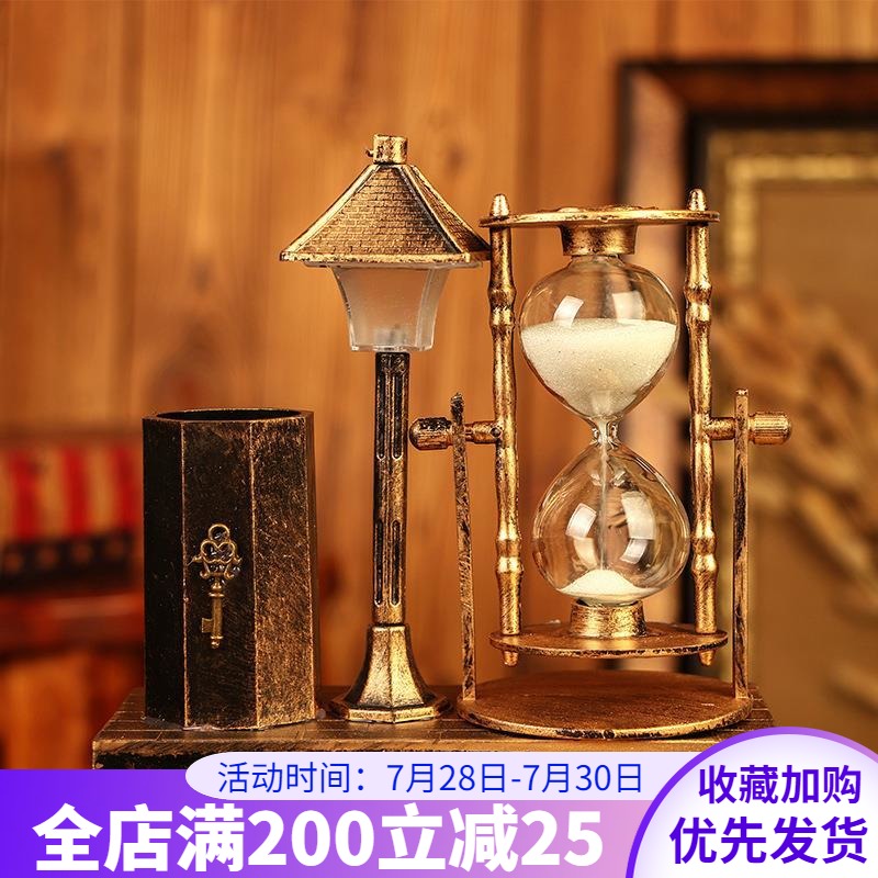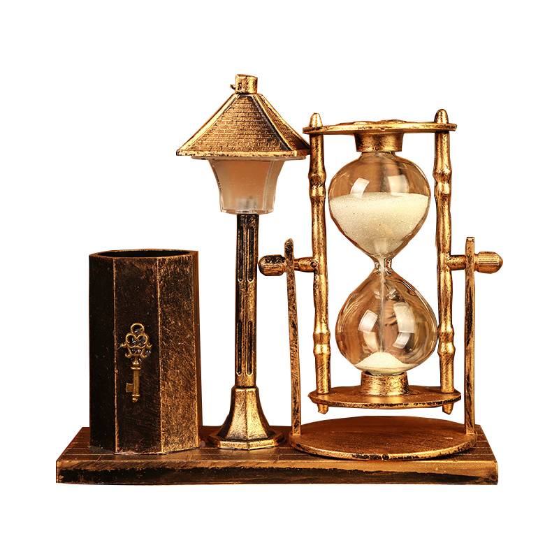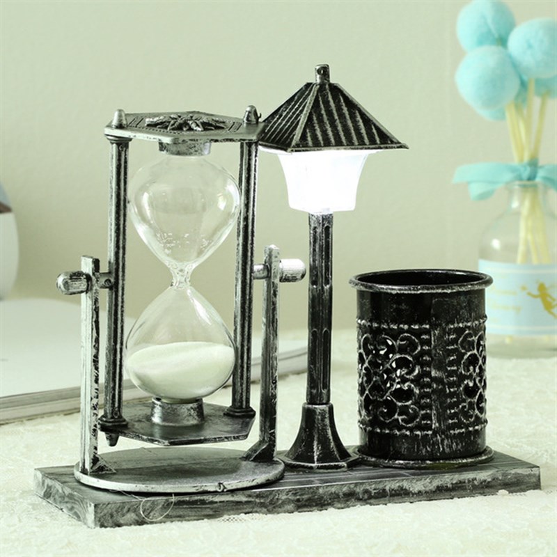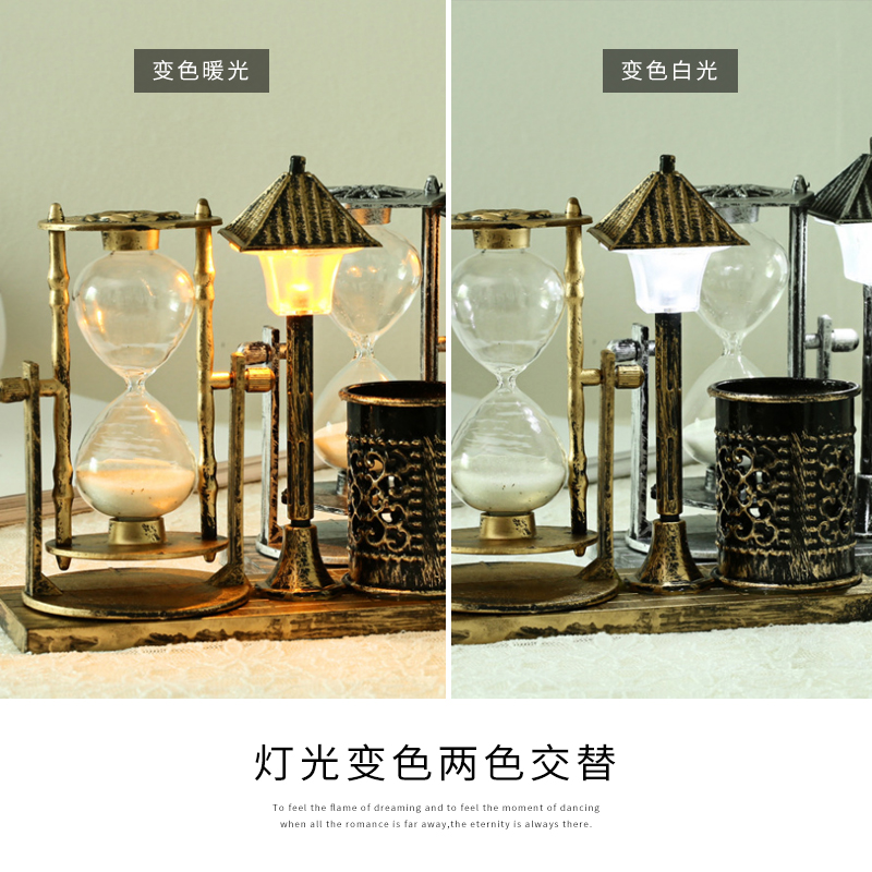 复古怀旧流砂沙漏路灯笔筒宿舍卧室白色变色小夜灯创意装饰品摆件