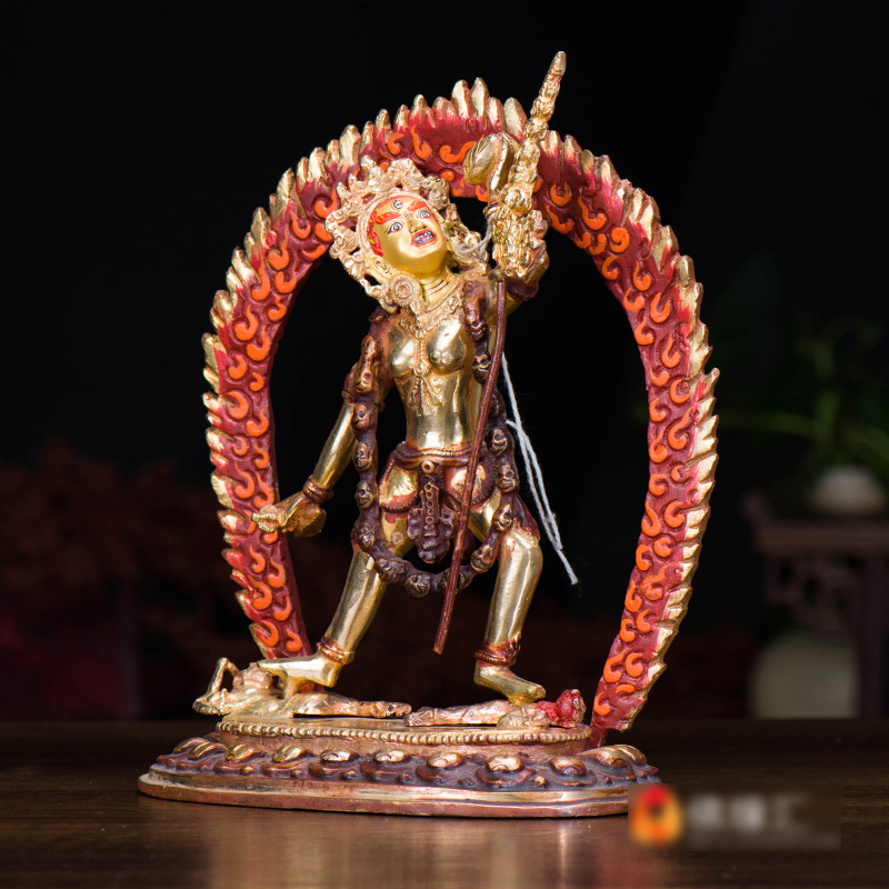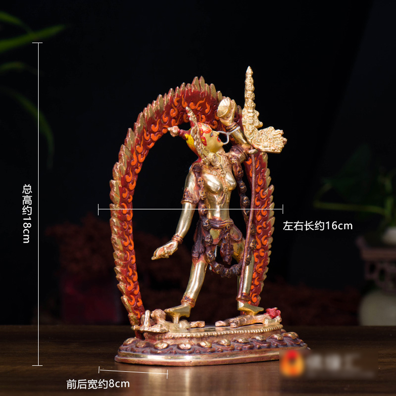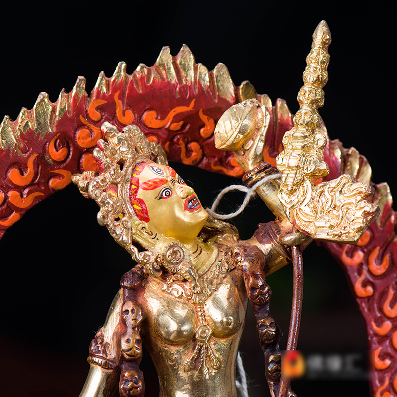 尼泊尔手工 18厘米 铜半鎏金那洛空行母 铜像(多杰南久玛)
