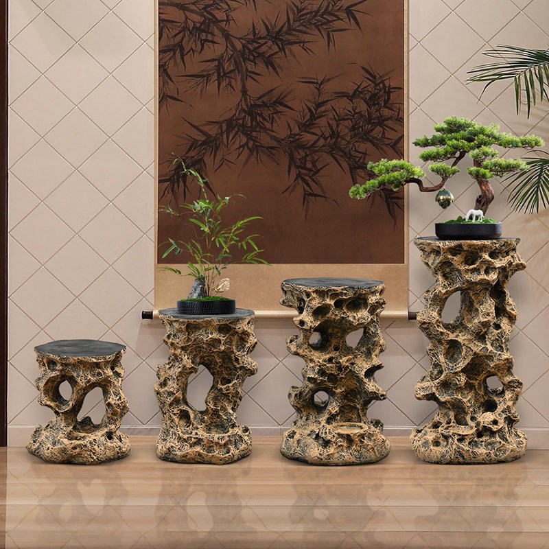 新中式太湖石f彷石台花盆托 托架盆景花架工艺品摆饰茶几假山底座