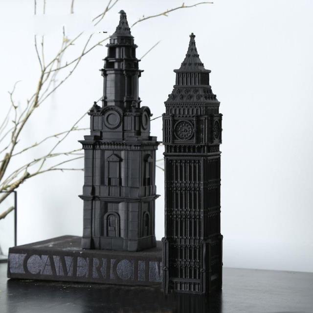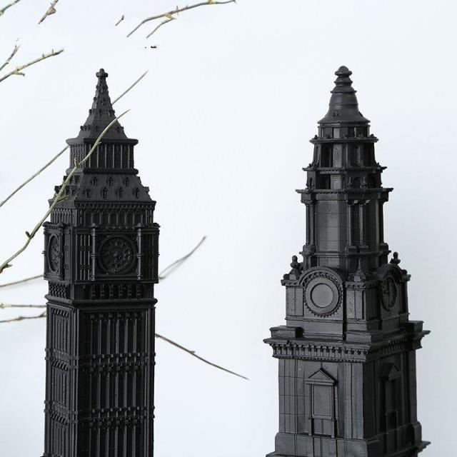 现代简约北欧黑白建筑模型树脂摆件创意客厅酒柜摆设家居软装饰品