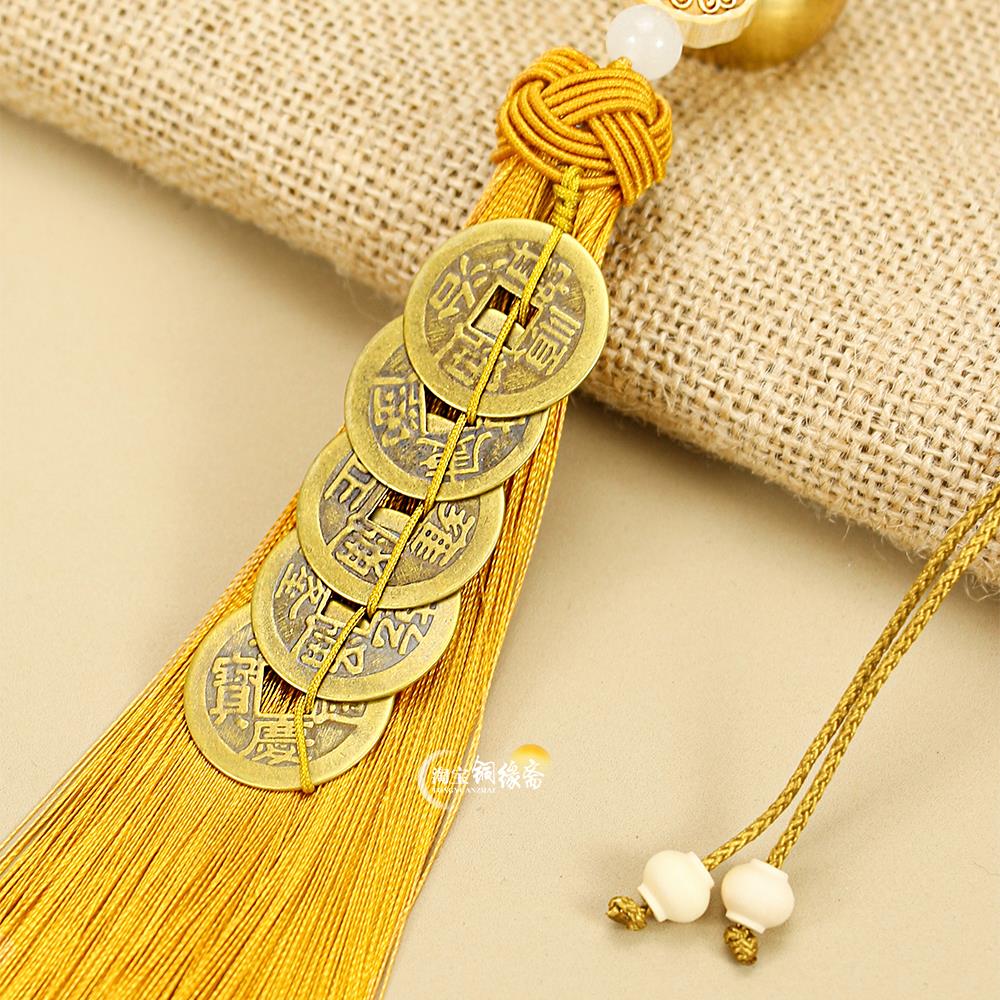 五帝钱葫芦挂件门对门铜钱串对卧室对厕所卧室玄关莲花挂饰挂件