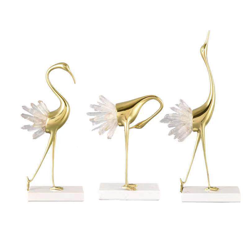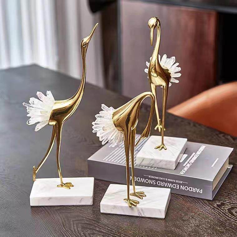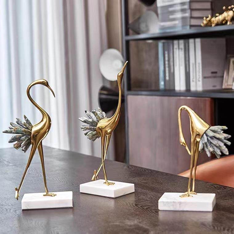 新中式鹤铜大理石摆件样白板间水晶仙软装饰品后现代桌装899面饰