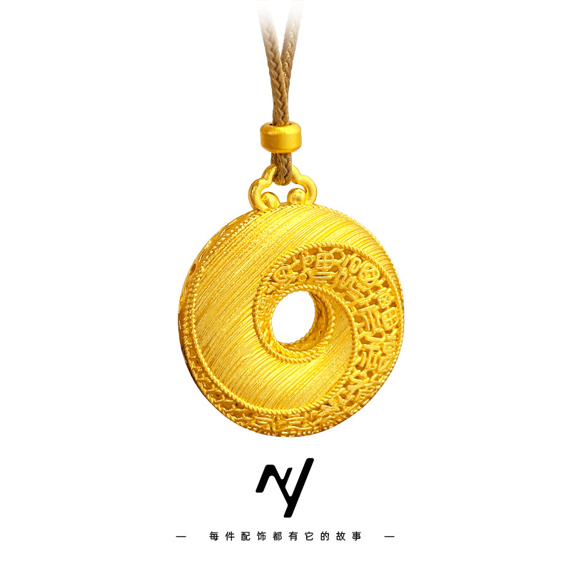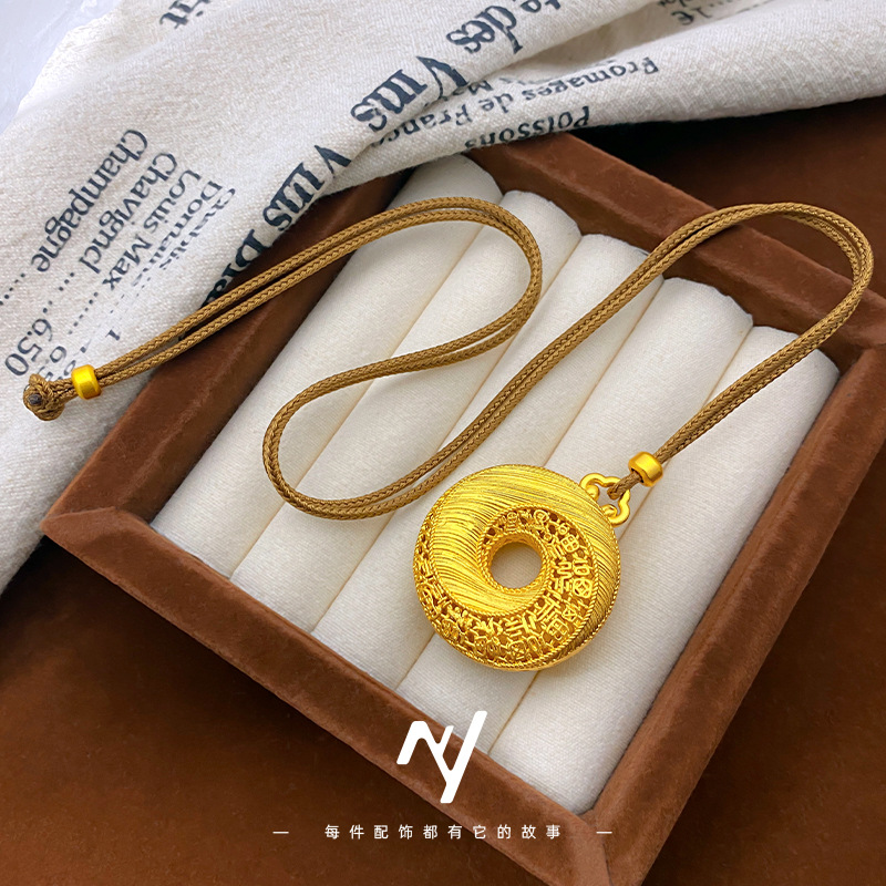 2025新中式男女同款国风花丝镂空拉丝纹福字太极图平安扣吊坠项链