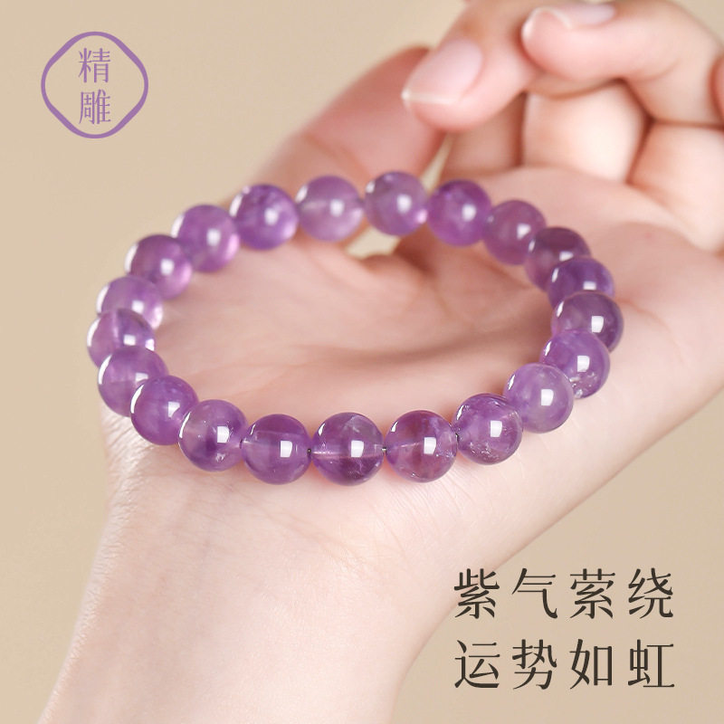 天然薰衣草紫水晶手链单圈男女圆珠九紫离火运深紫色水晶珠子手串