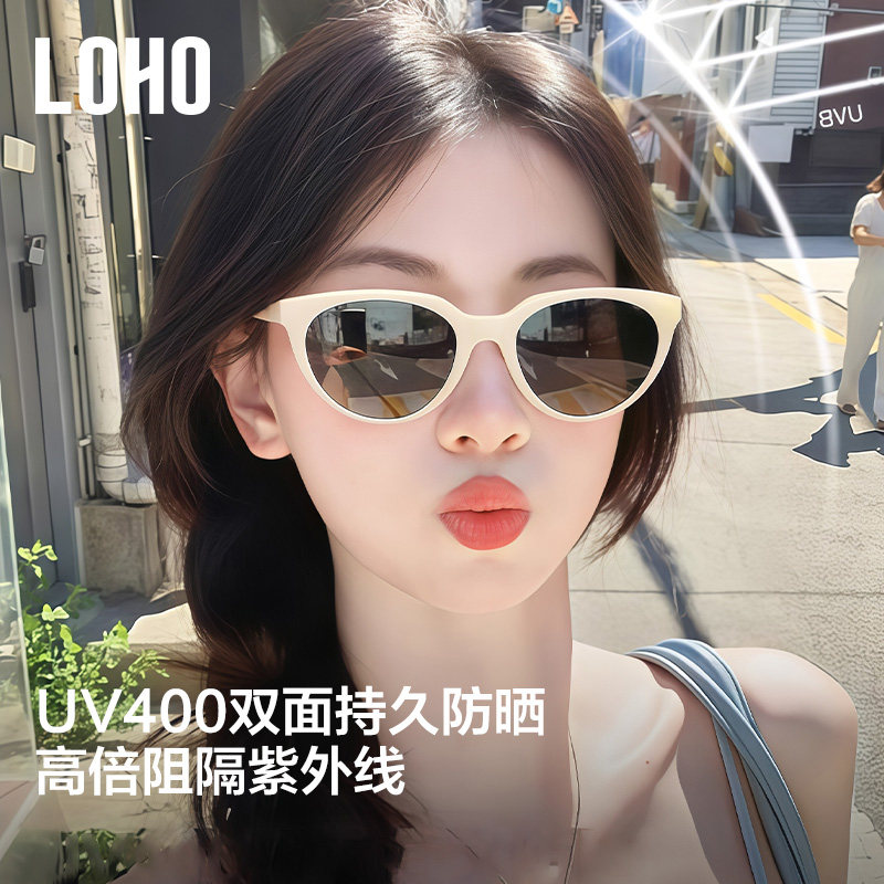 LOHO2025新款复古猫眼太阳镜防紫外线墨镜白框女款方圆脸KRISTEN