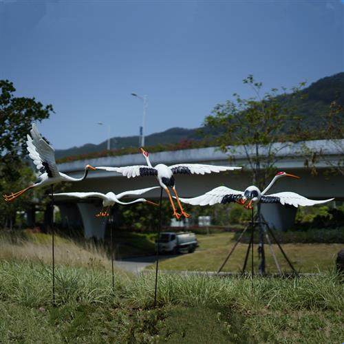 户外飞仙鹤摆件玻璃钢仿真动物雕塑模型园林庭院水池鸟类草坪装饰