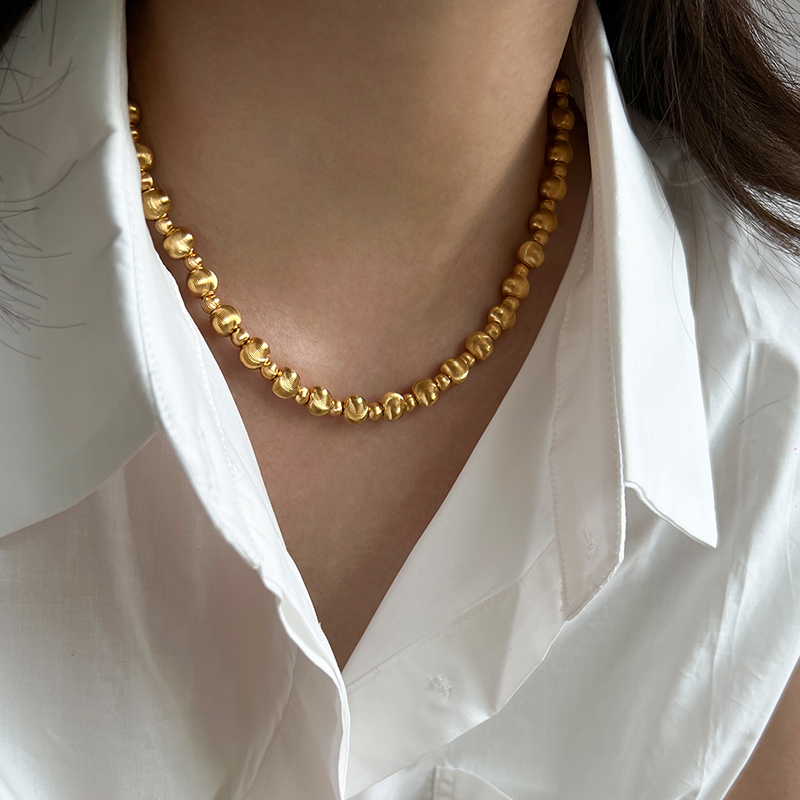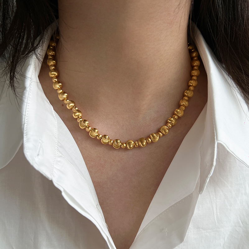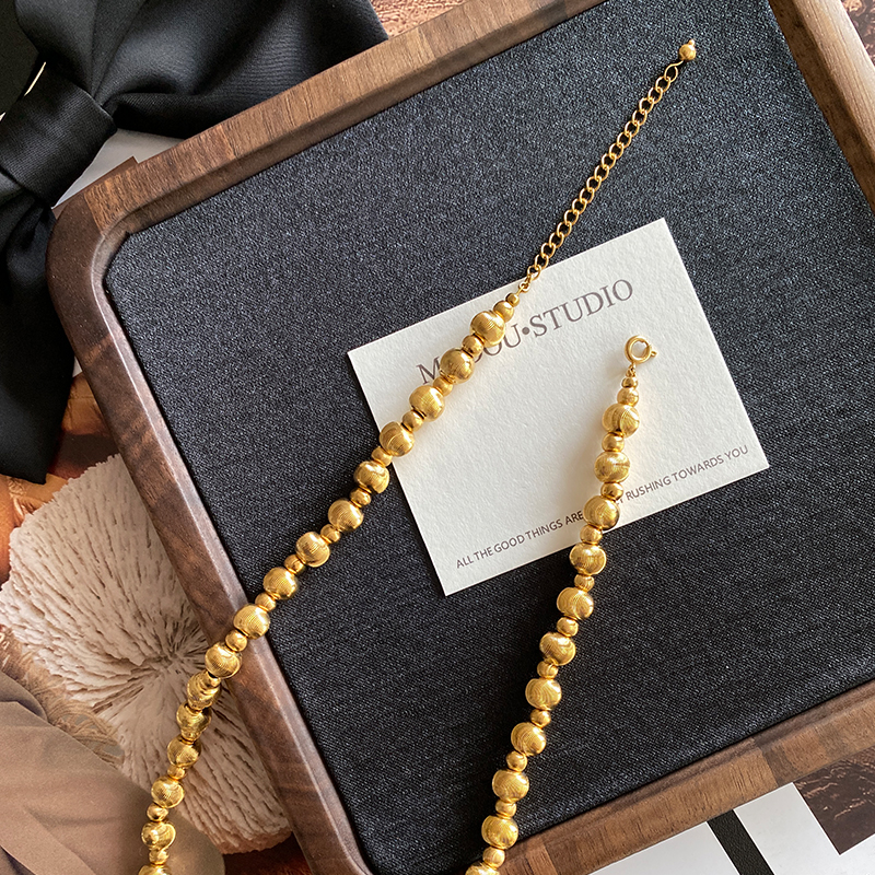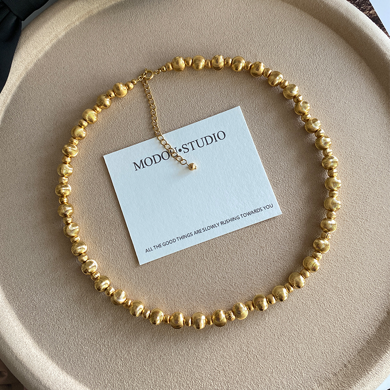 墨豆家 灯泡猫眼项链轻奢小众高级感高光拉丝猫眼串珠锁骨链颈链