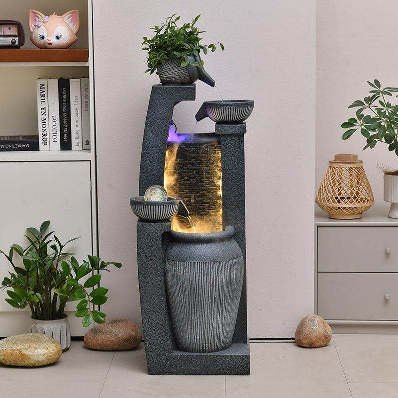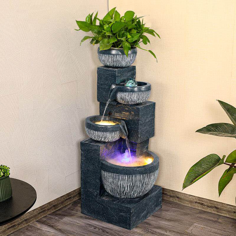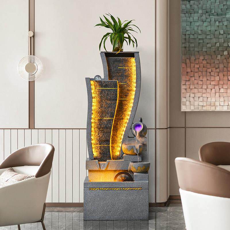 高山流水摆件循环水客厅鱼缸室内招财风车假山水景喷泉造景风水轮
