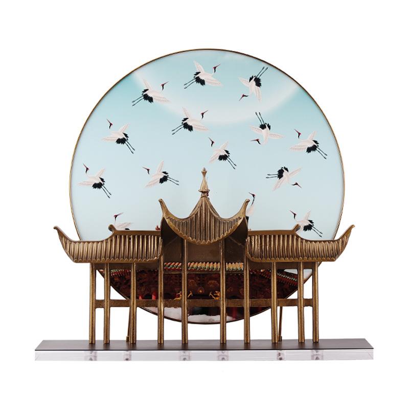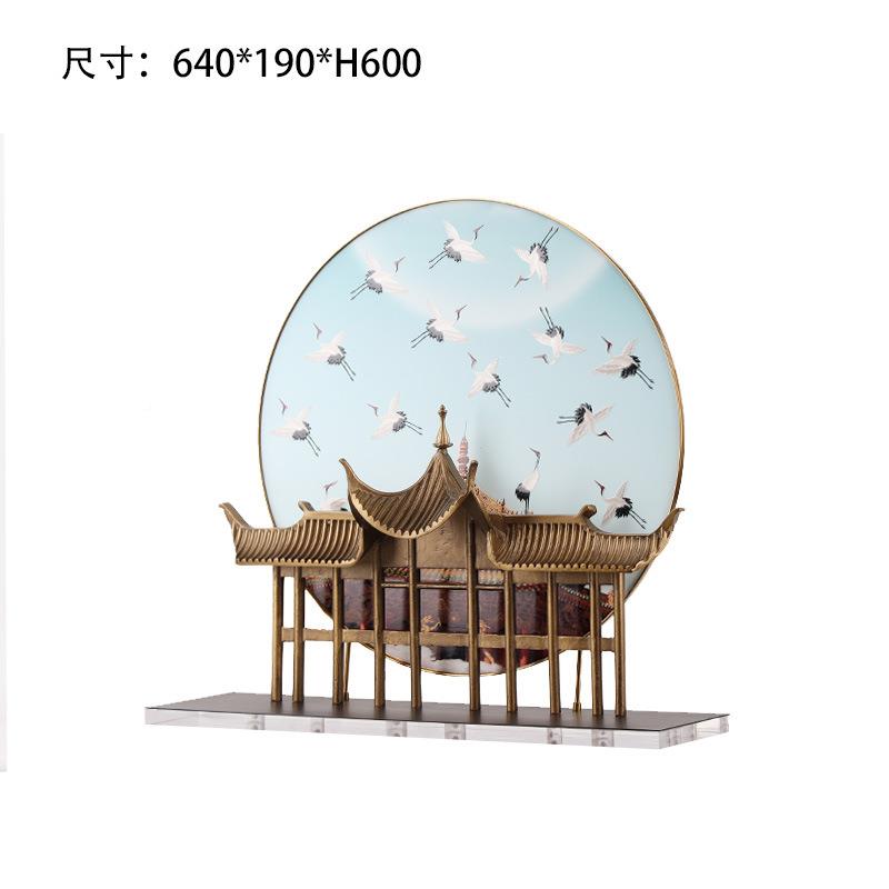 创761软意新中式百鹤图金属风屏摆玄关售楼处酒店大堂件样板房装