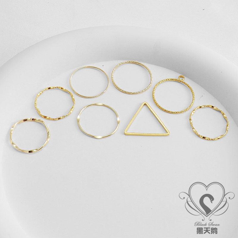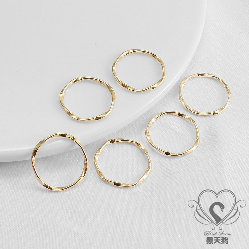14k包金保色切花圈闭口圈压扁戒子圈指环diy手工饰品配件麻花戒指
