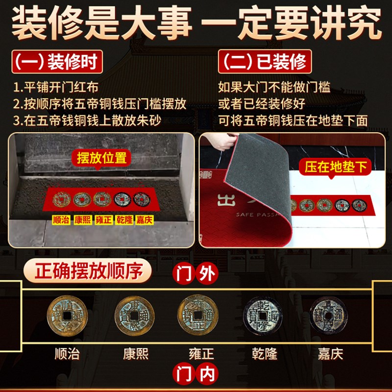 装修真品五帝钱古币压门槛专用门对门口过门石下压的老铜钱摆件
