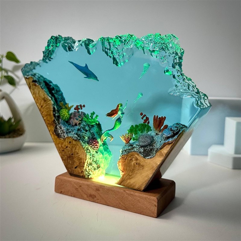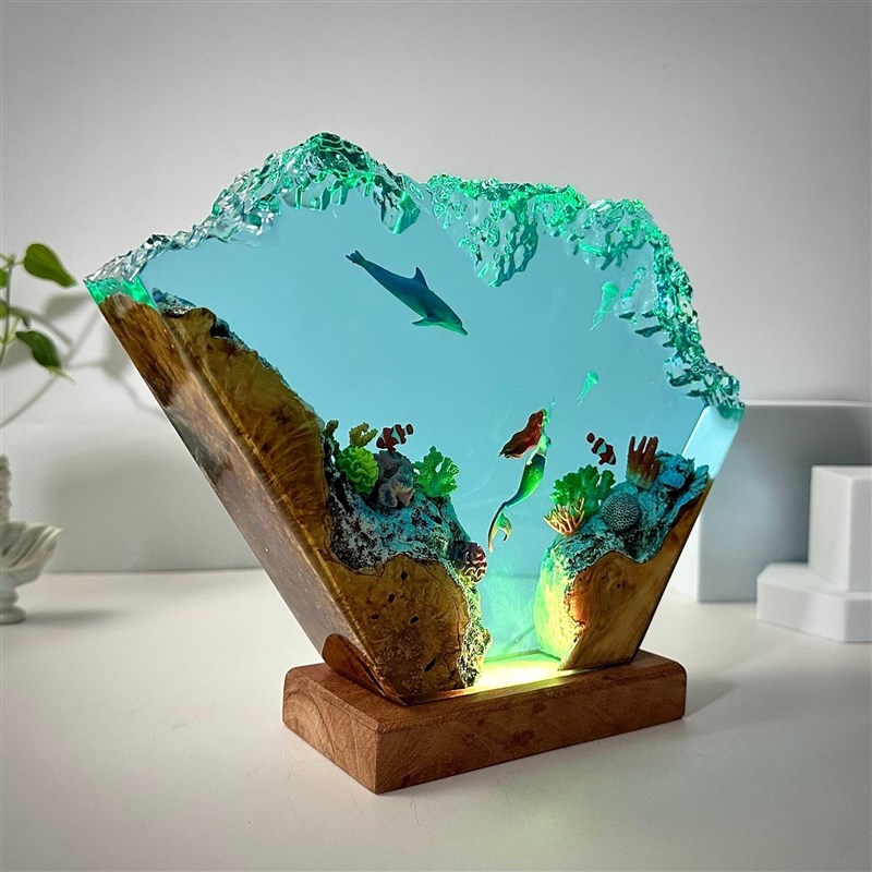 海豚和美人鱼树脂灯艺术装w饰灯树脂木艺术灯个性化夜灯客厅装饰