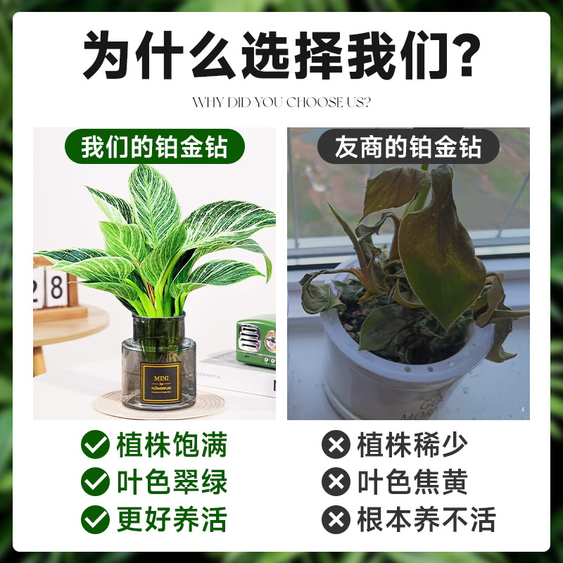 铂金钻水培植物室内好养大叶金钻绿公主盆栽带花苞蔓绿绒花卉绿植