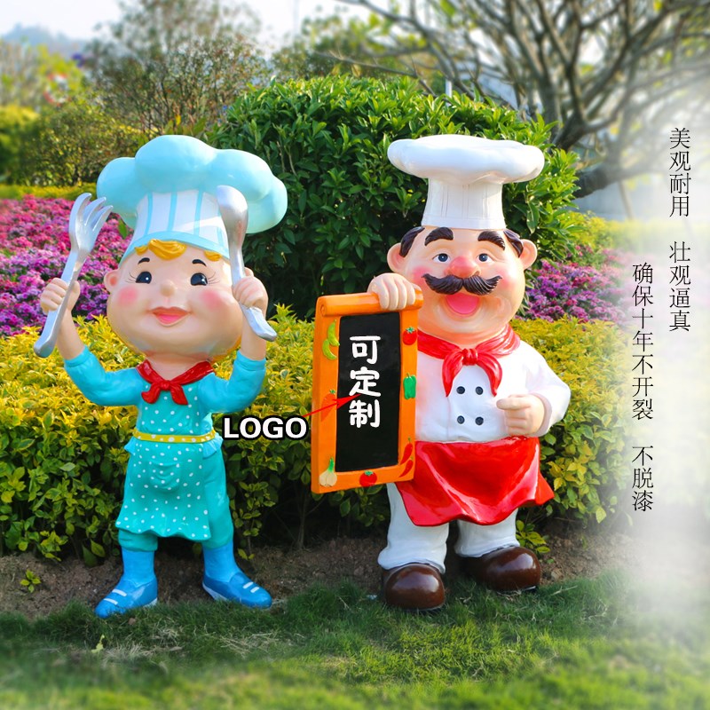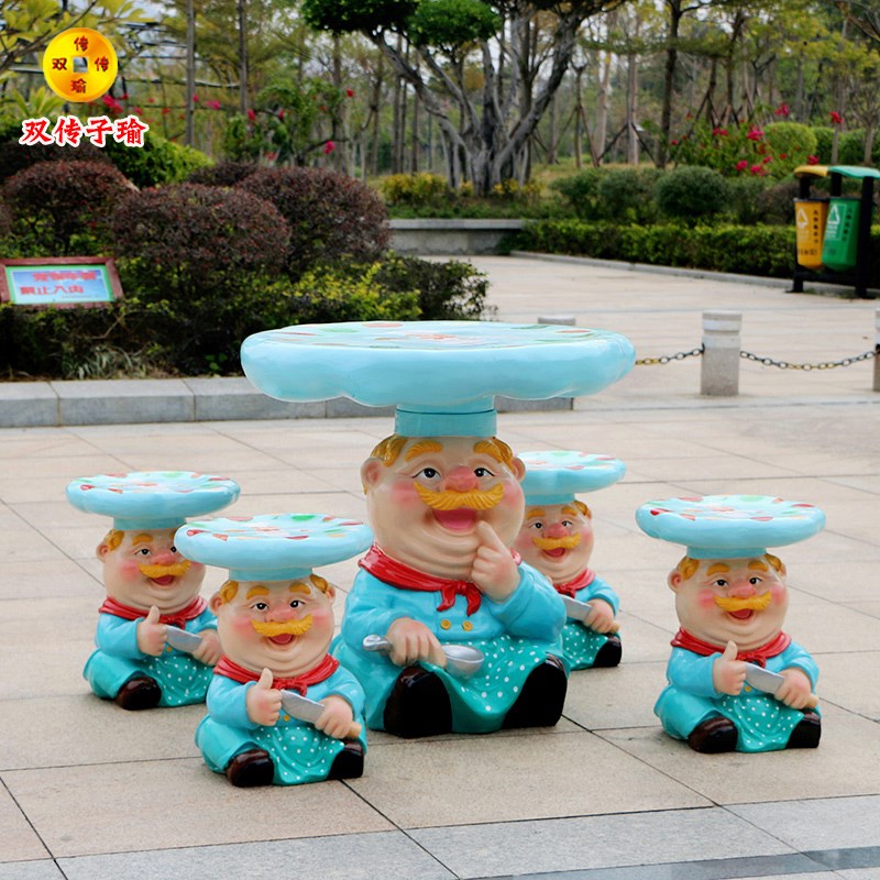 卡通厨师人物玻璃钢雕塑落地桌椅摆件F户外装饰酒楼饭店美陈工艺