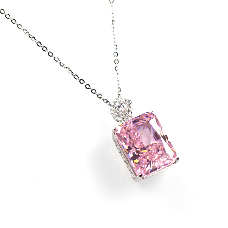 雷迪恩粉钻高碳钻吊坠项链女浅粉色长方形大挂坠子925纯银镀18K金