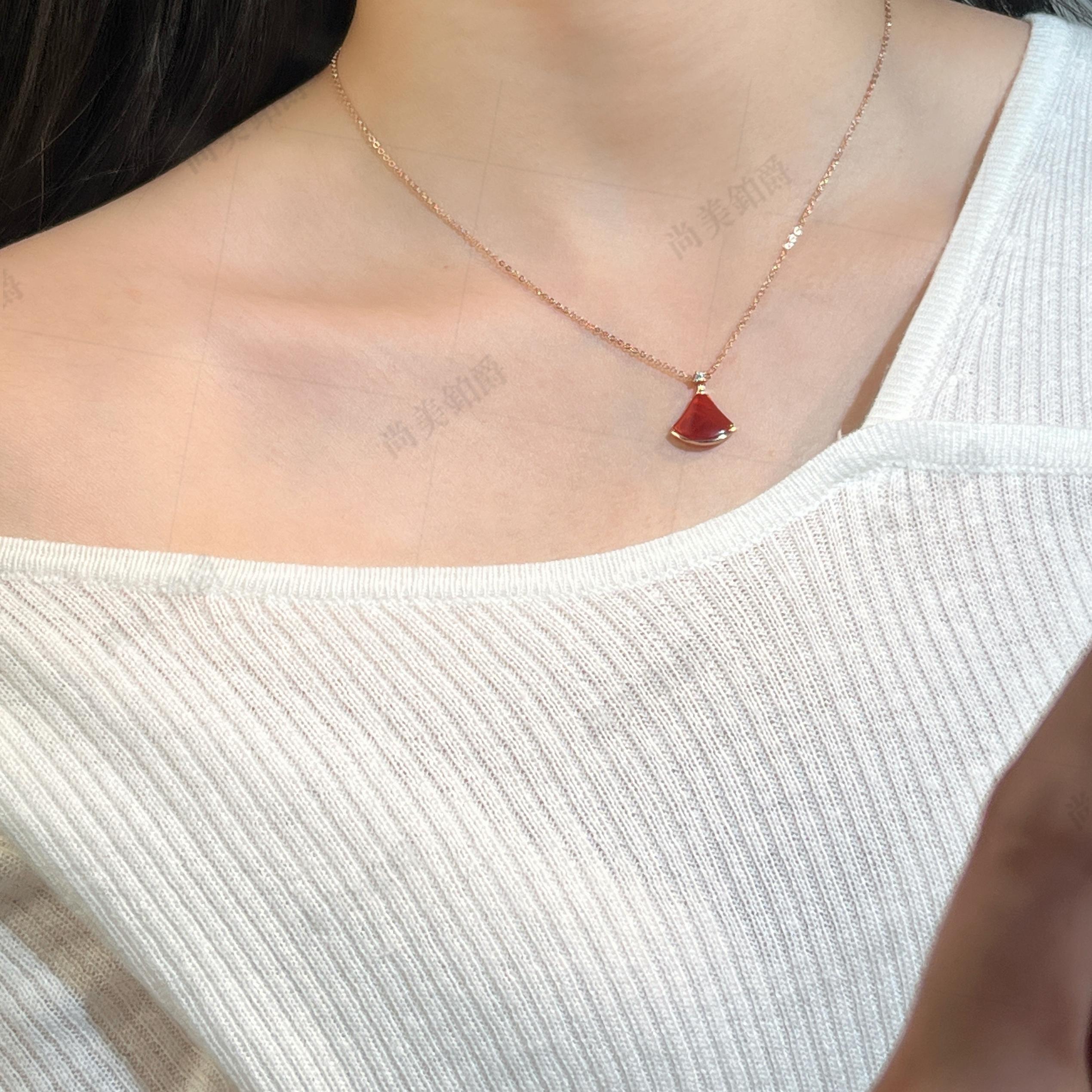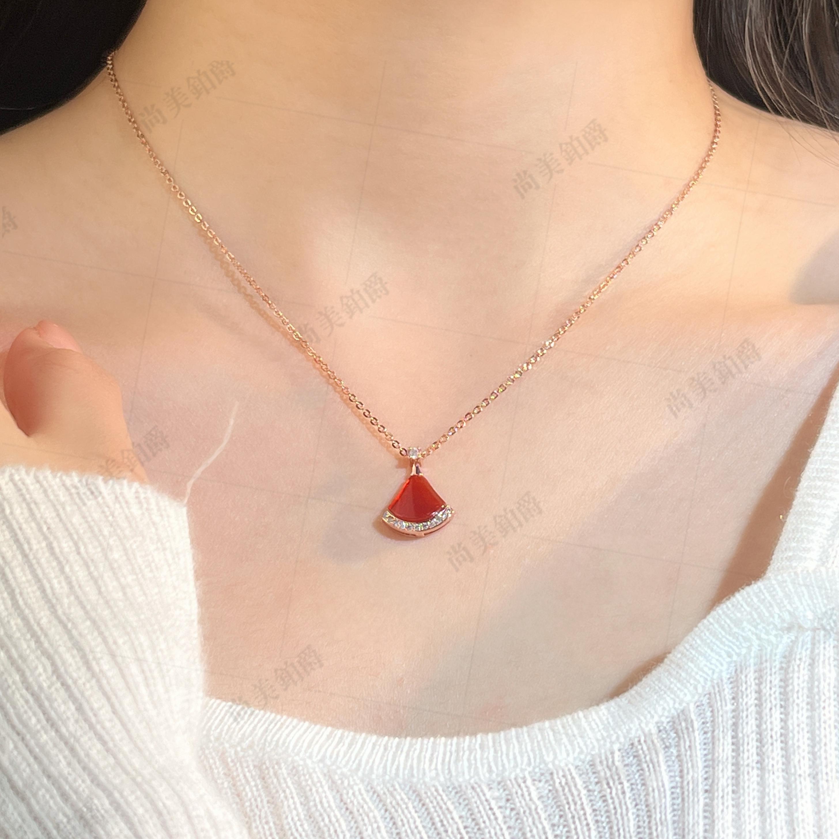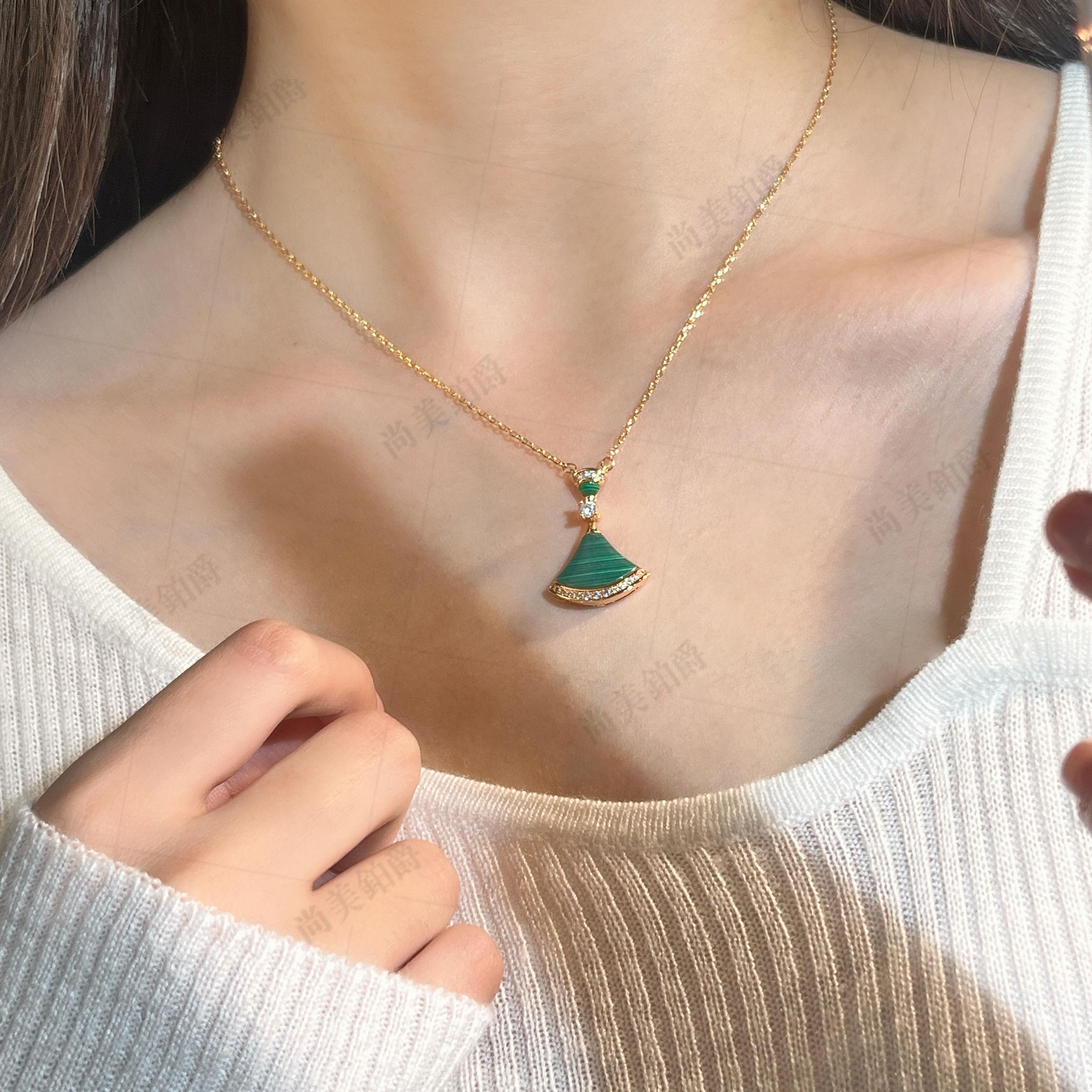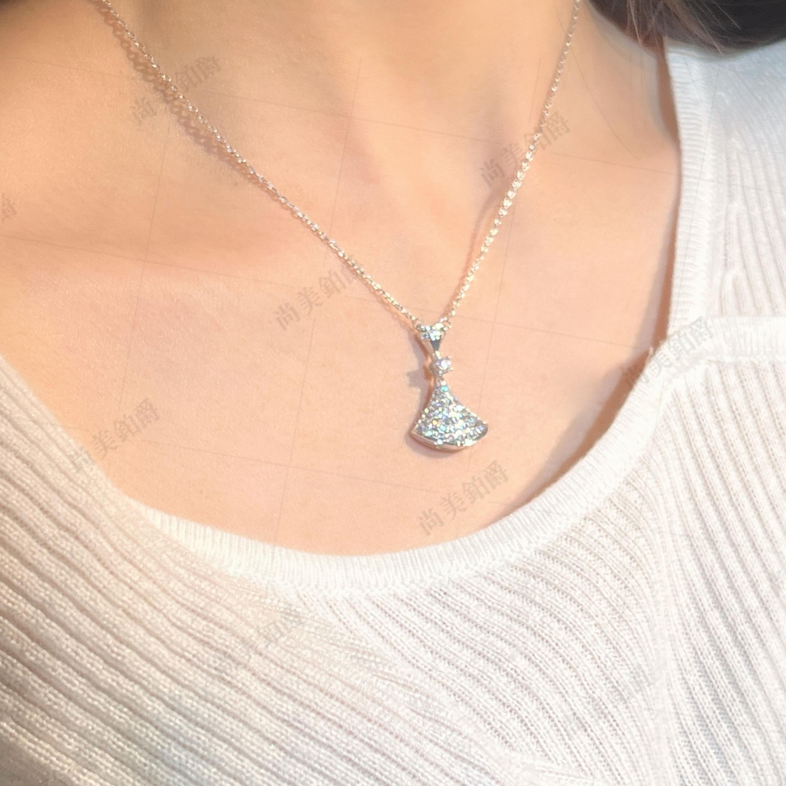 尚美铂爵白贝母小扇子项链18K金大号带钻小裙子锁骨链情人节礼物