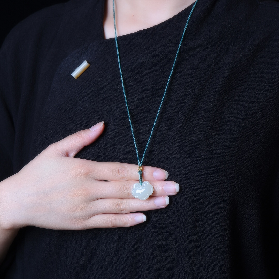 新疆和田玉羊脂玉白玉青白玉如意平安锁吊坠男女士款挂件玉坠玉佩