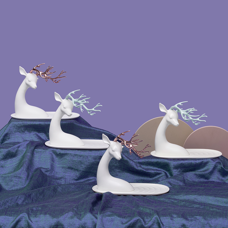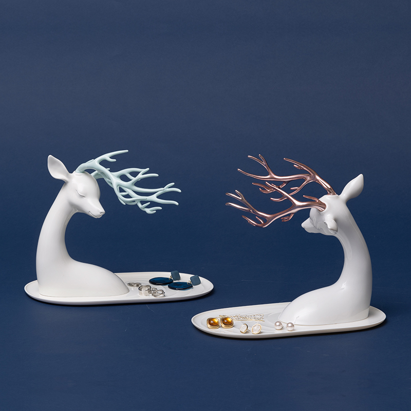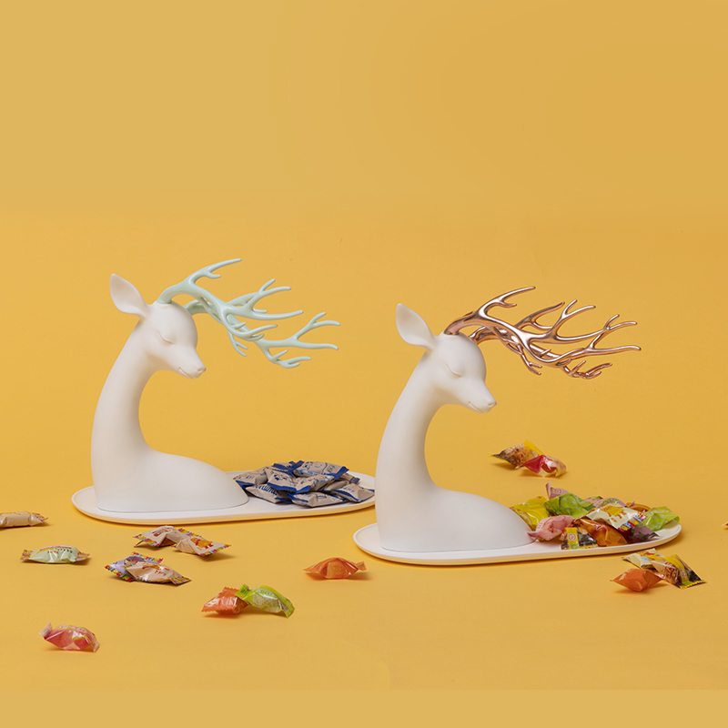 白夜童话a客厅玄关钥匙收纳摆件鹿桌面托盘置物架装饰乔迁新居礼