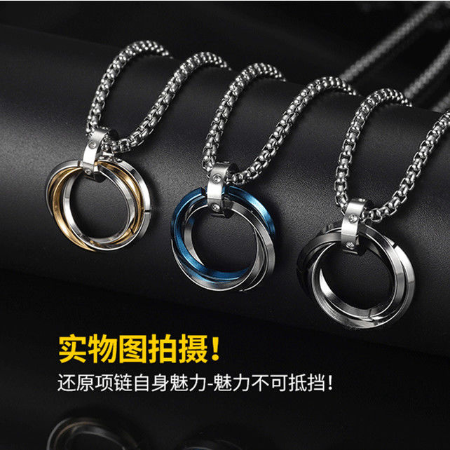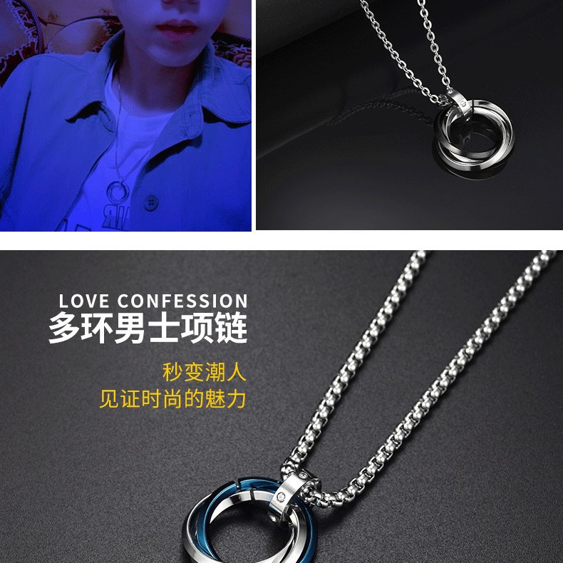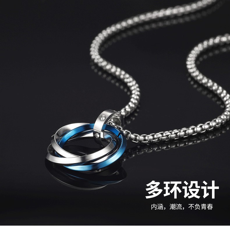 潮人项链男士钛钢戒指吊坠个性简约嘻哈抖音ins网红挂件免费刻字
