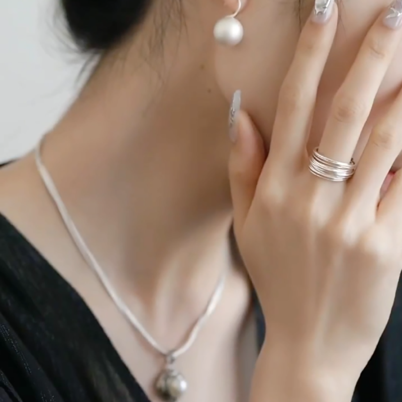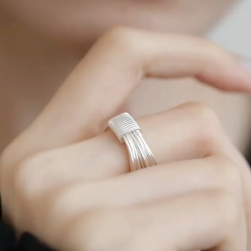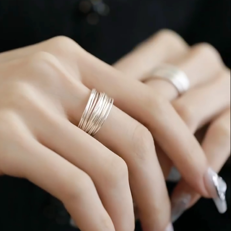 S925纯银多层银色素圈戒指女民族风小众设计高级感新中式复古指环