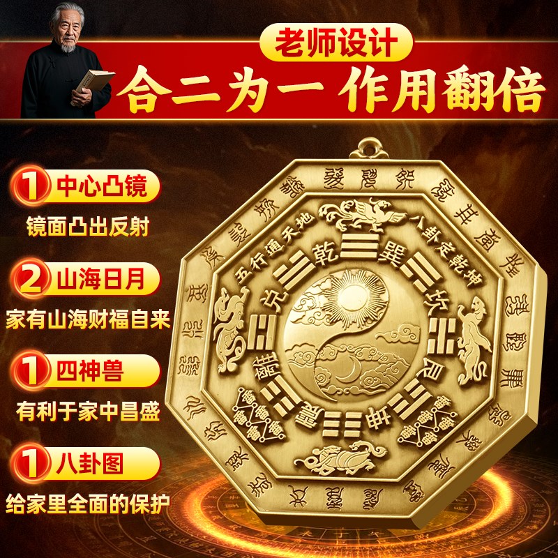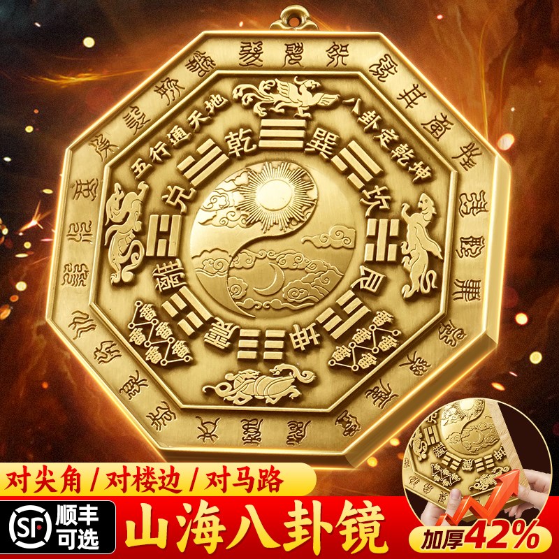 八卦镜凸镜山海镇凸面镜窗户挂件九宫纯铜室外大门门口铜镜窗户的