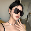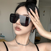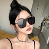 欧美复古黑色墨镜超大放框一体式平面高级感网红方圆脸显瘦太阳镜