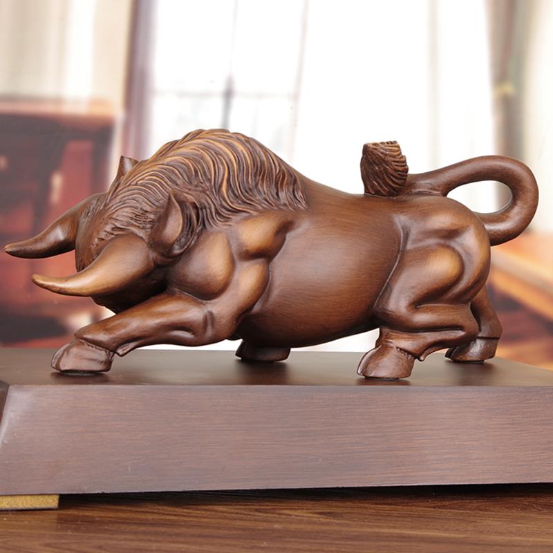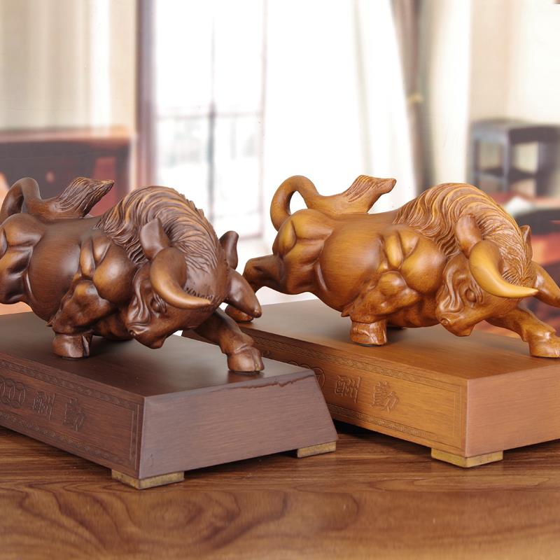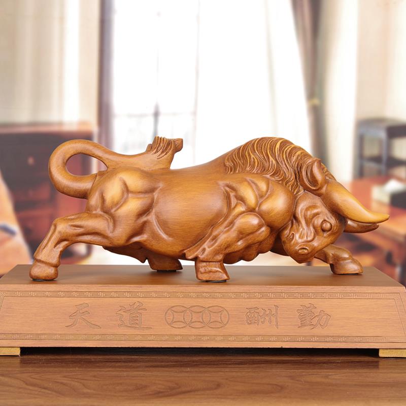 实木雕招财牛摆件家居酒柜办公室桌生肖牛装饰公司开业手工艺礼品