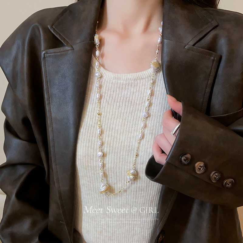 赫本风珍珠毛衣链长款轻奢高级感大气高档不规则叠戴项链配饰女