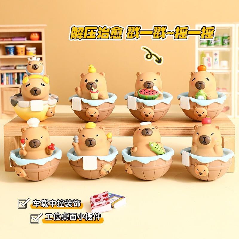 不倒翁桌面摆件卡皮巴拉盲盒办公装饰品可爱治愈工位情绪稳定礼物