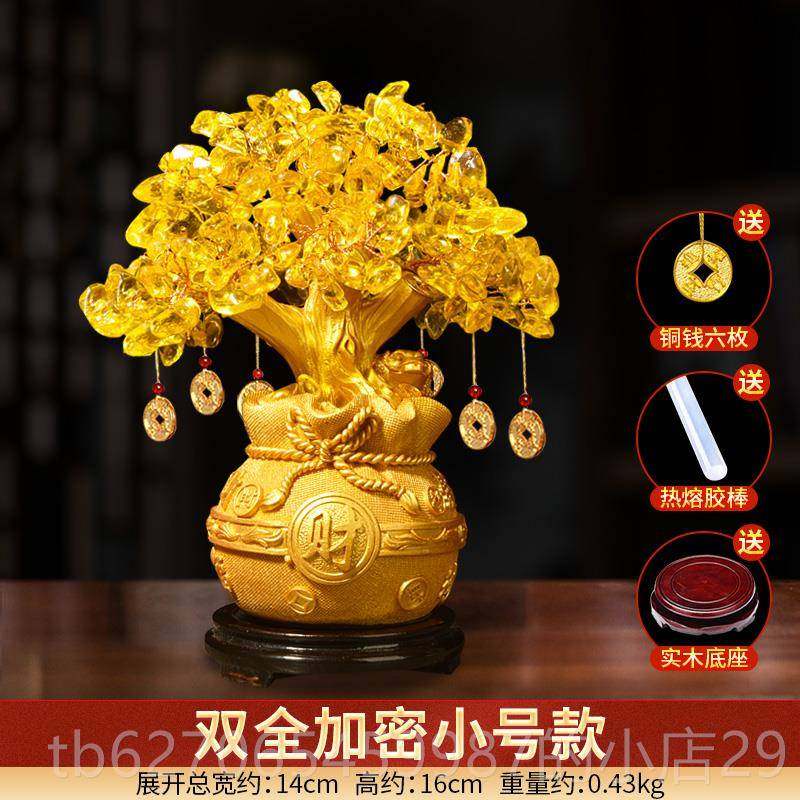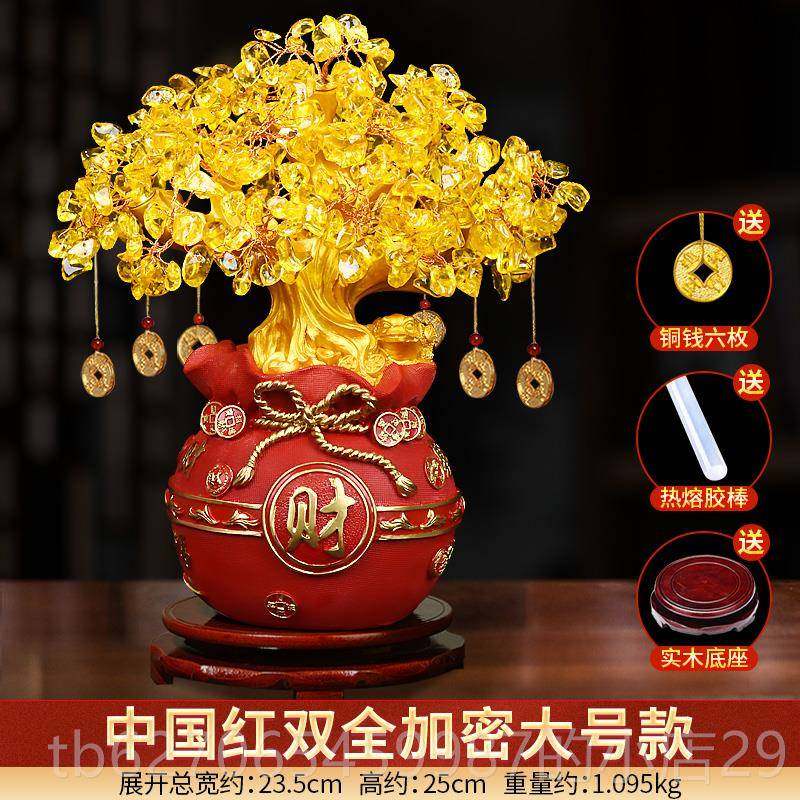 高档黄水晶店发财树摆件饰新年果客厅酒柜开装业送礼铺钱树摇工艺