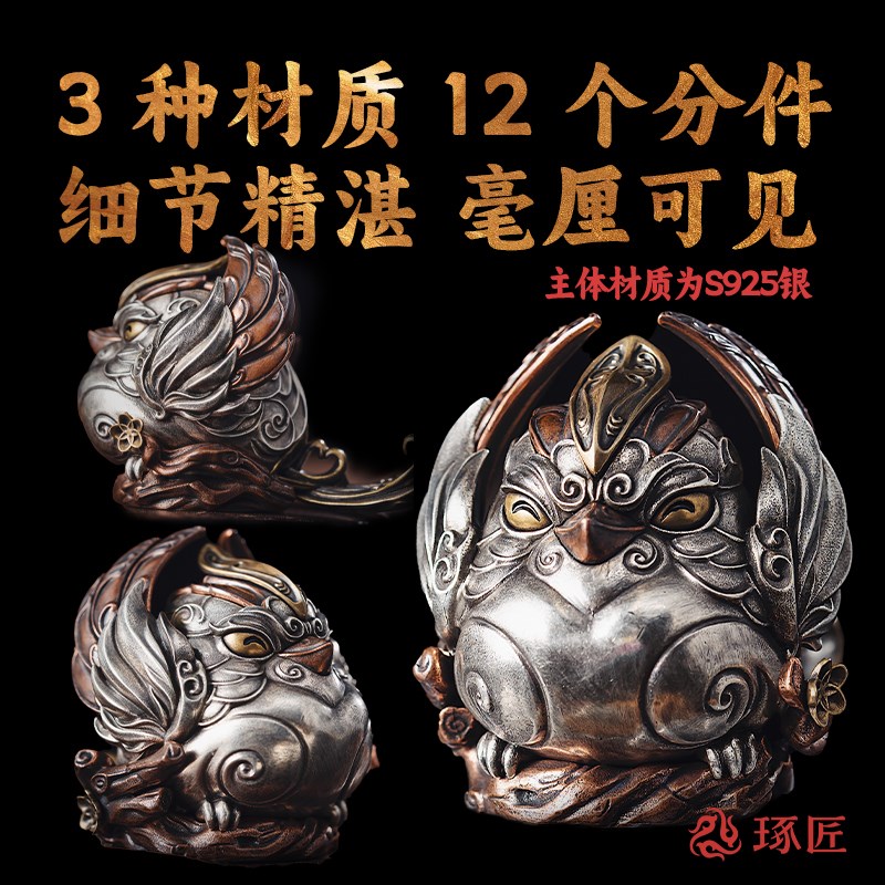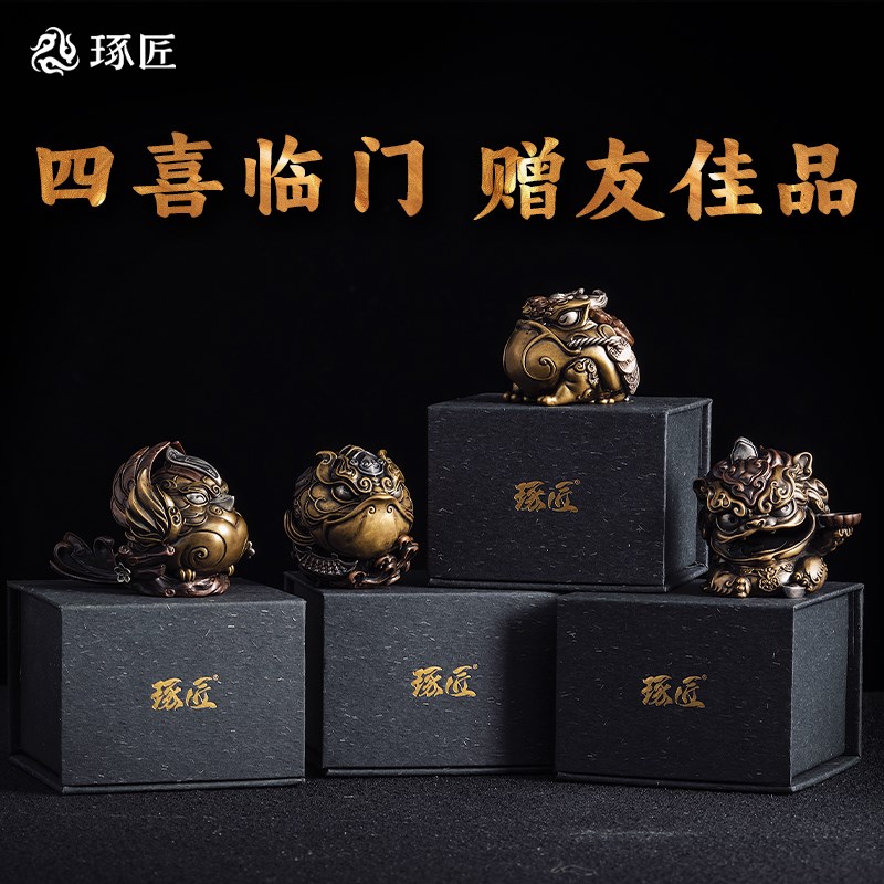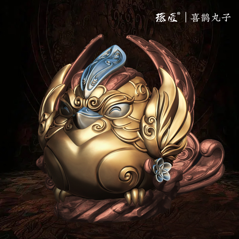 琢匠喜鹊摆件办公室桌面手把件国风家居装饰品高级铜工艺品礼物