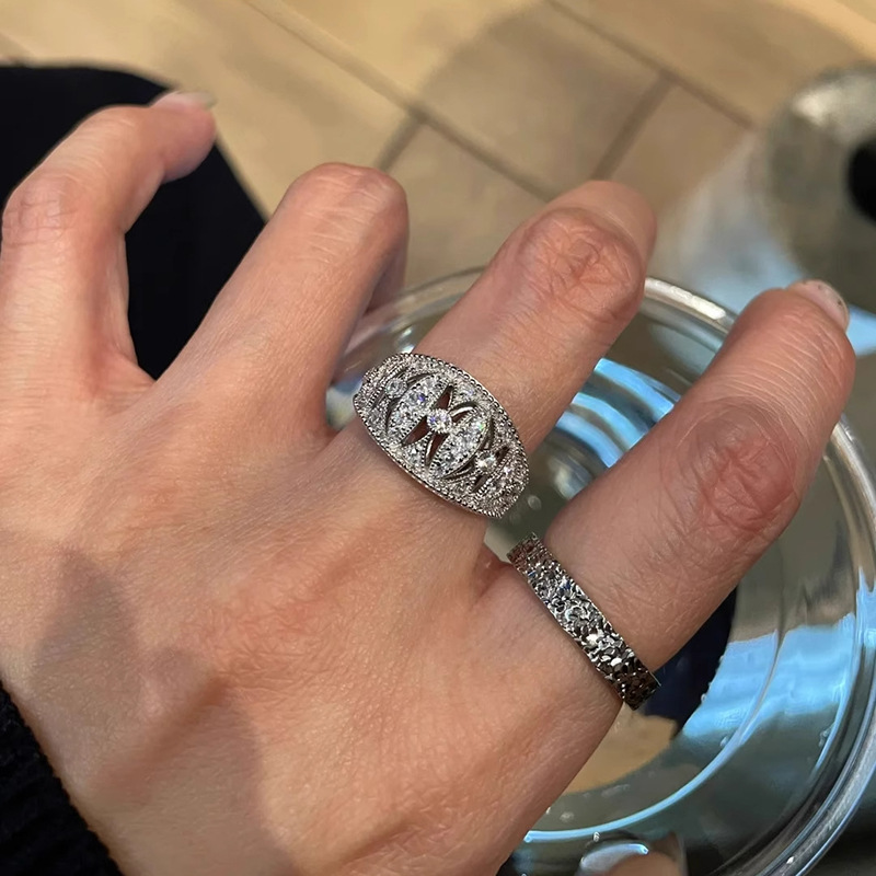 新款叠戴复古排戒指轻奢时尚简约镶宫廷雕花灯笼条戒