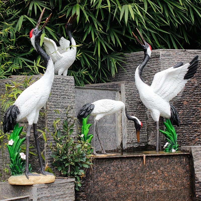 户外园林景观装饰造景仙鹤玻璃钢雕塑小品公园假山水池丹顶鹤摆件