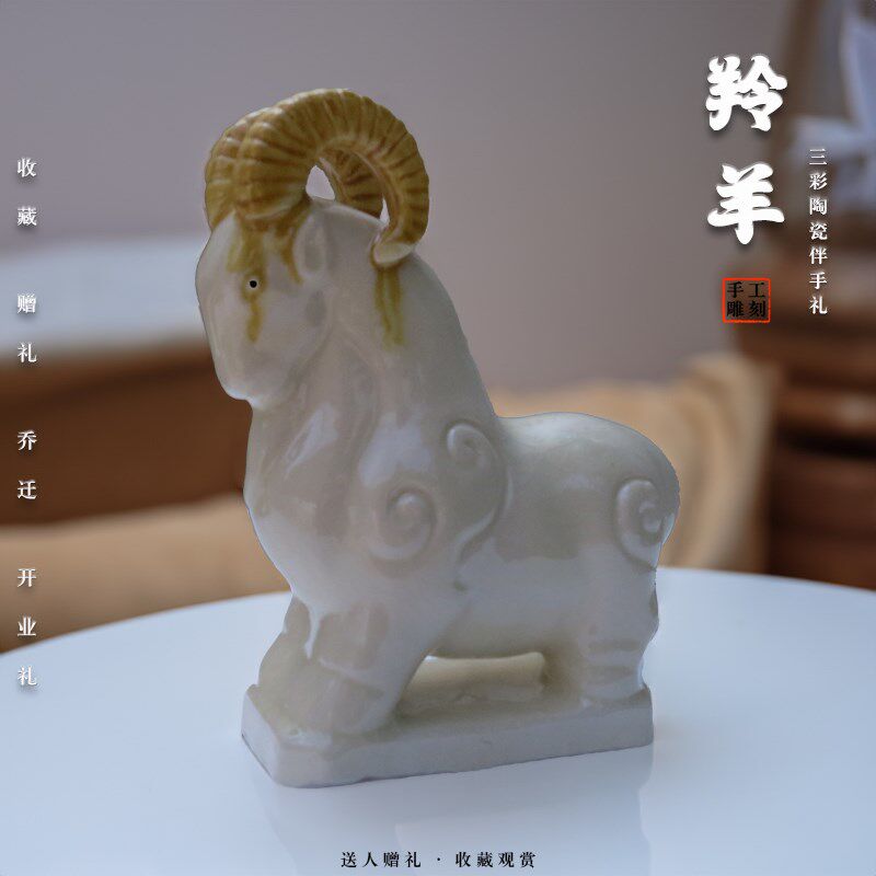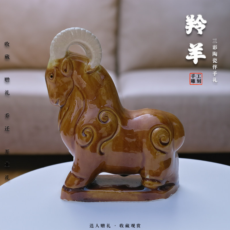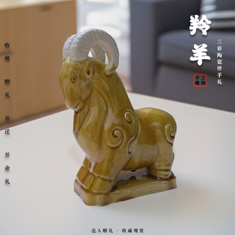 陶羊羚羊黄色羊唐居件瓷器山瓷卧室客厅家摆礼物