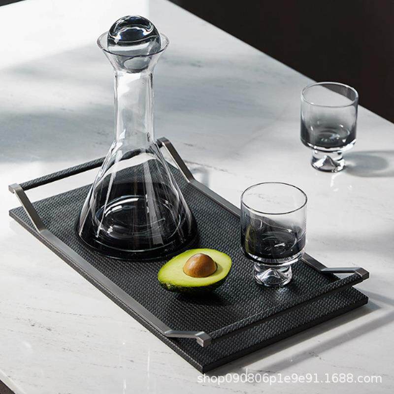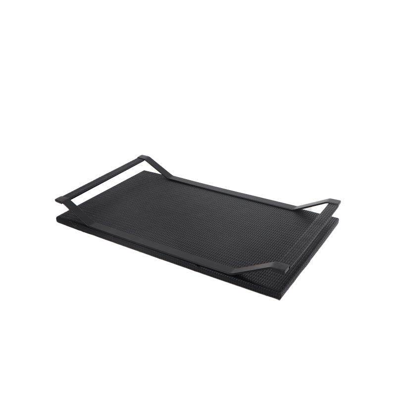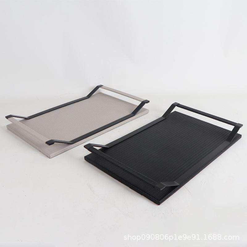 欧式家居样板间会所酒店轻奢托盘现代极简黑色皮质金属收纳盘摆件