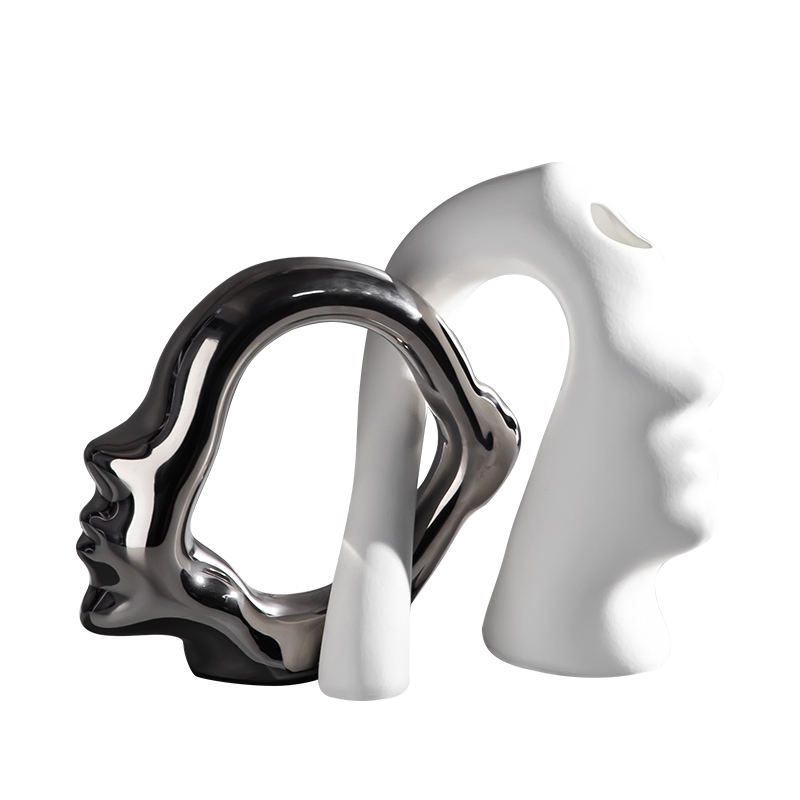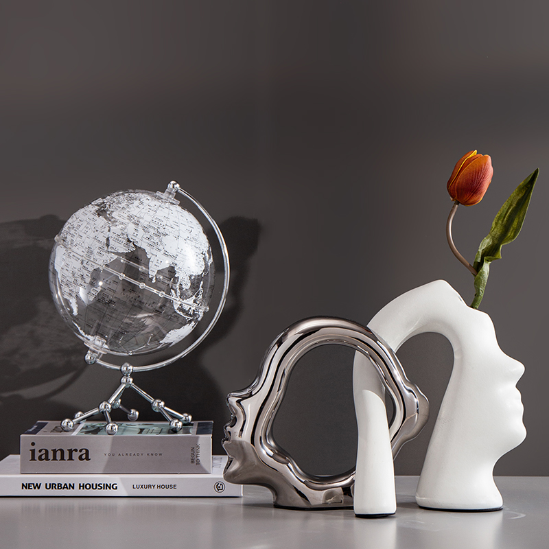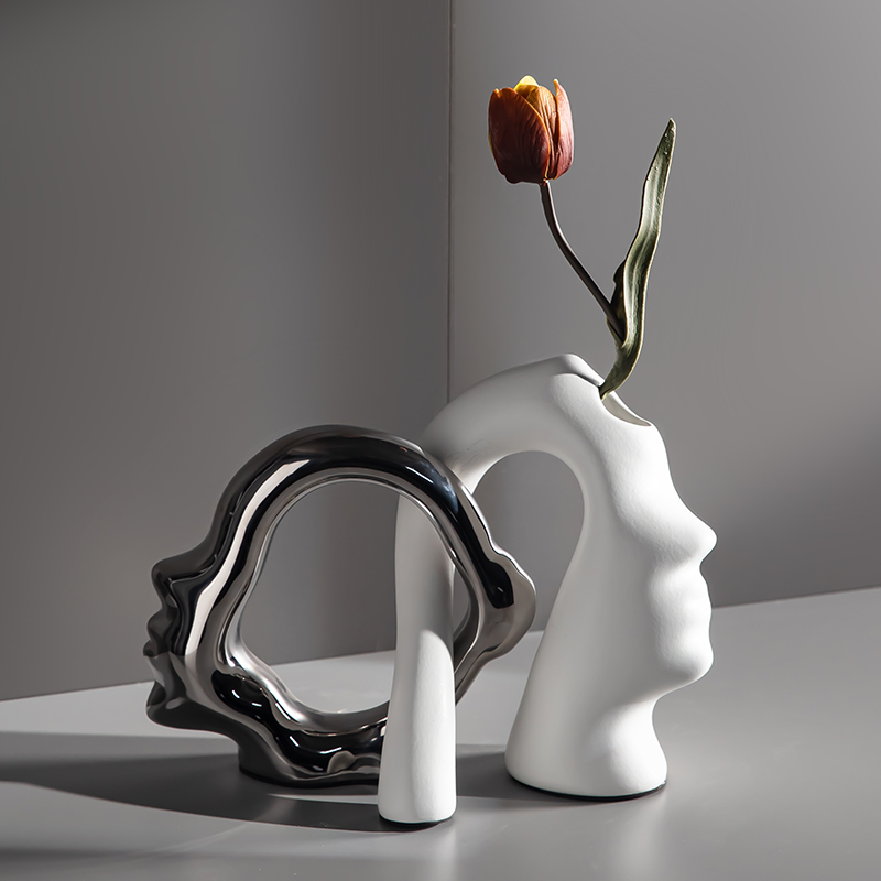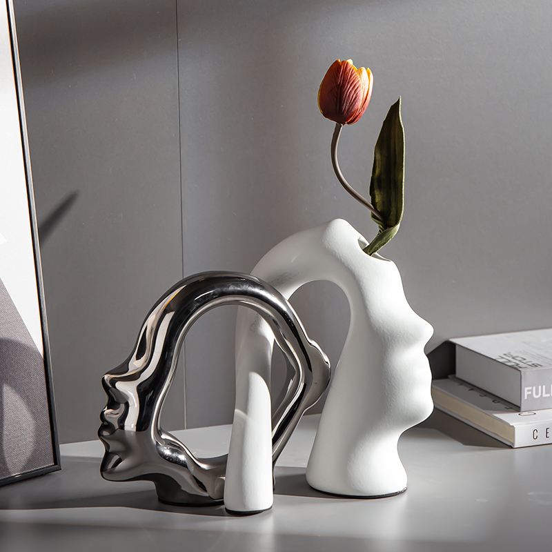 现简约人物白色摆件客厅家居装饰品艺术工N艺品电镀银色花插摆设