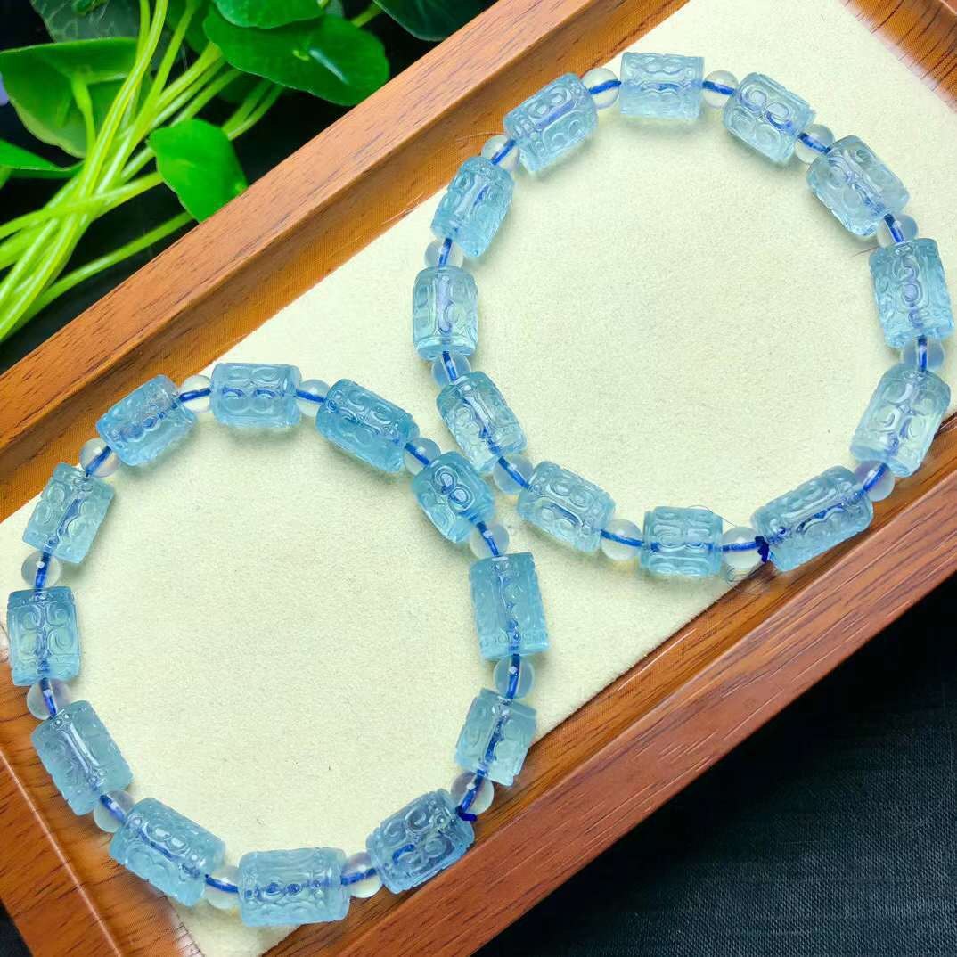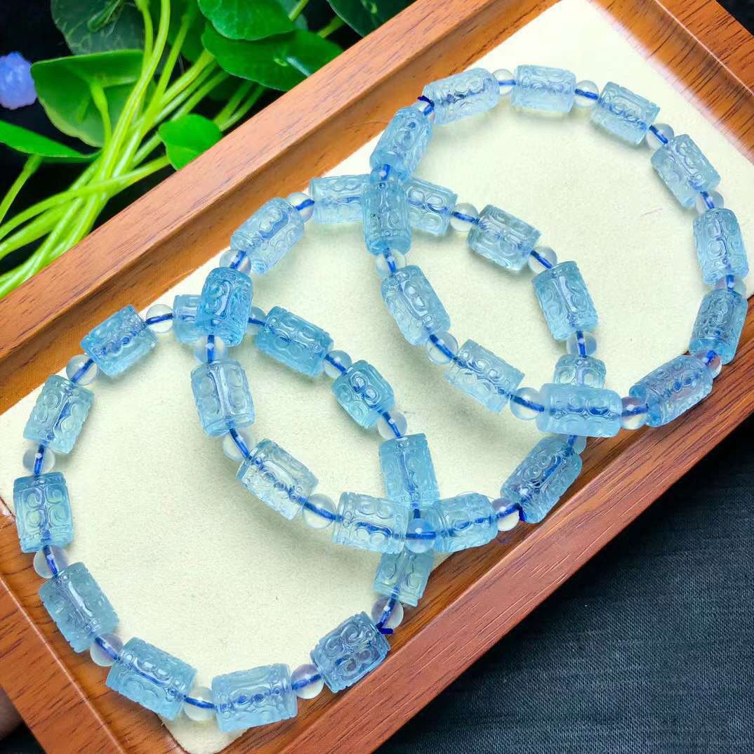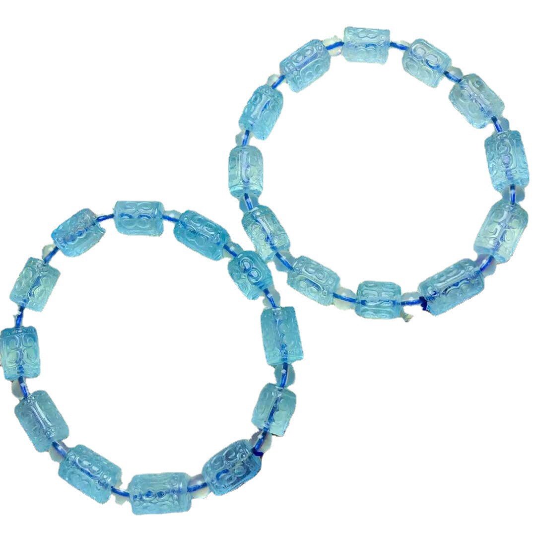 新品天然海蓝宝回纹桶珠单圈手链水晶手串女款蓝色礼物手串饰品