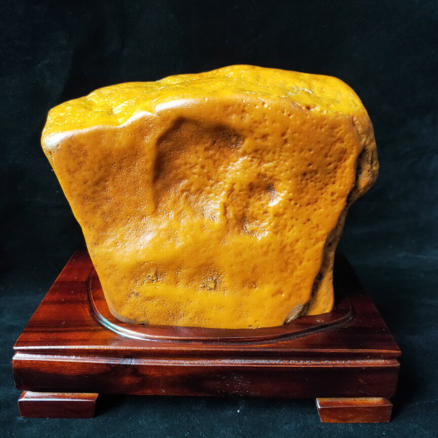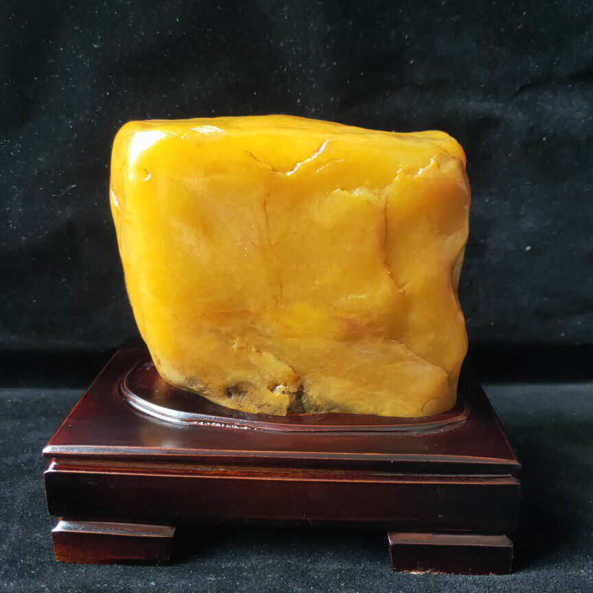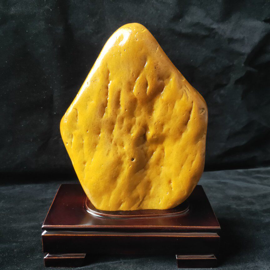 奇石头天然黄蜡腊石原石黄龙玉籽精品摆件孤品手工配底座收藏观赏