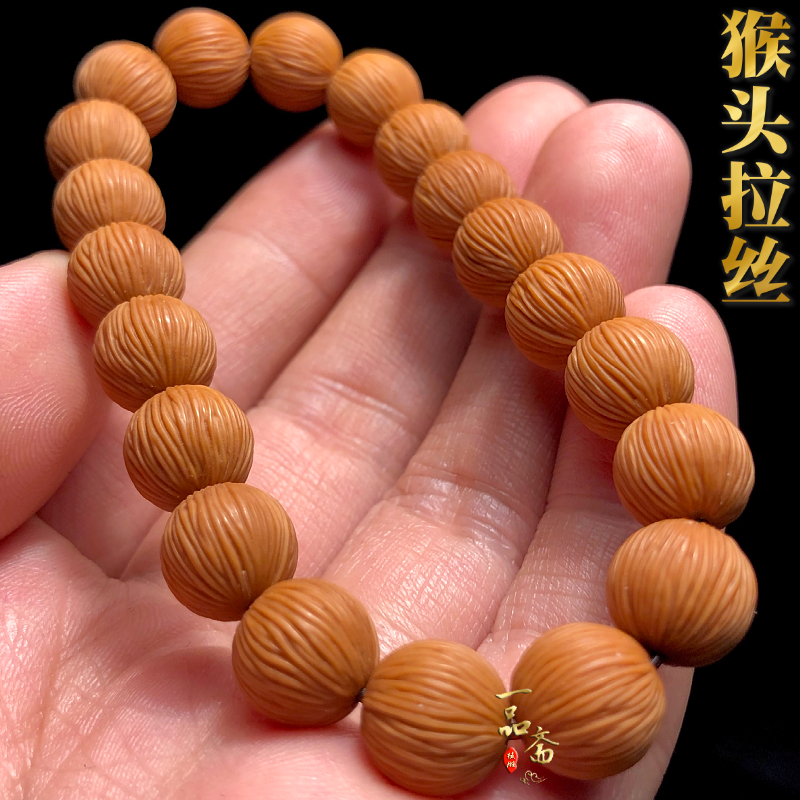 10㎜拉丝猴头手串高端男士手链男款金丝小核桃文玩桃核橄榄核精雕