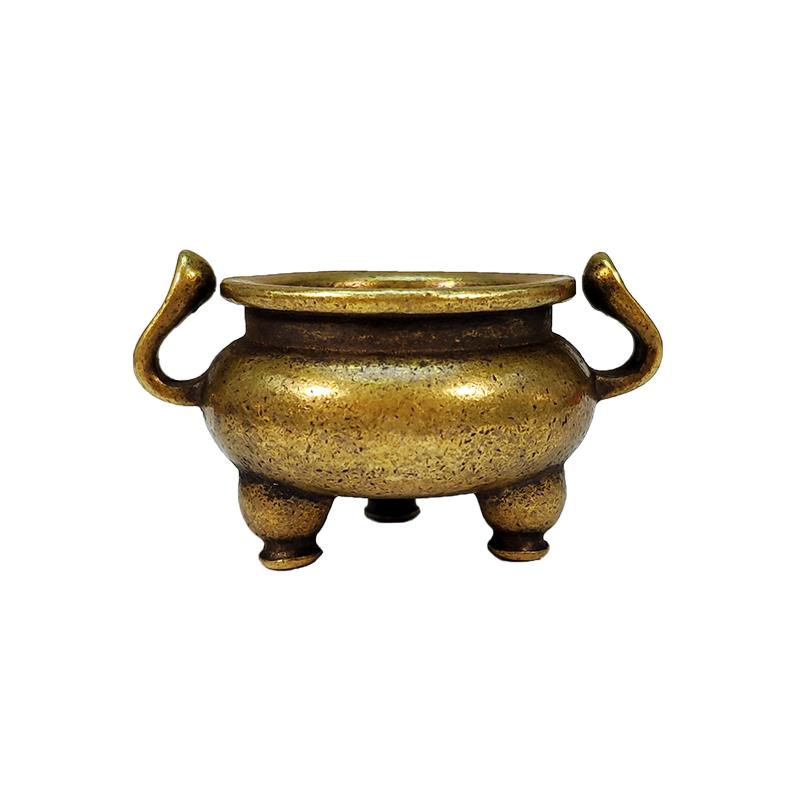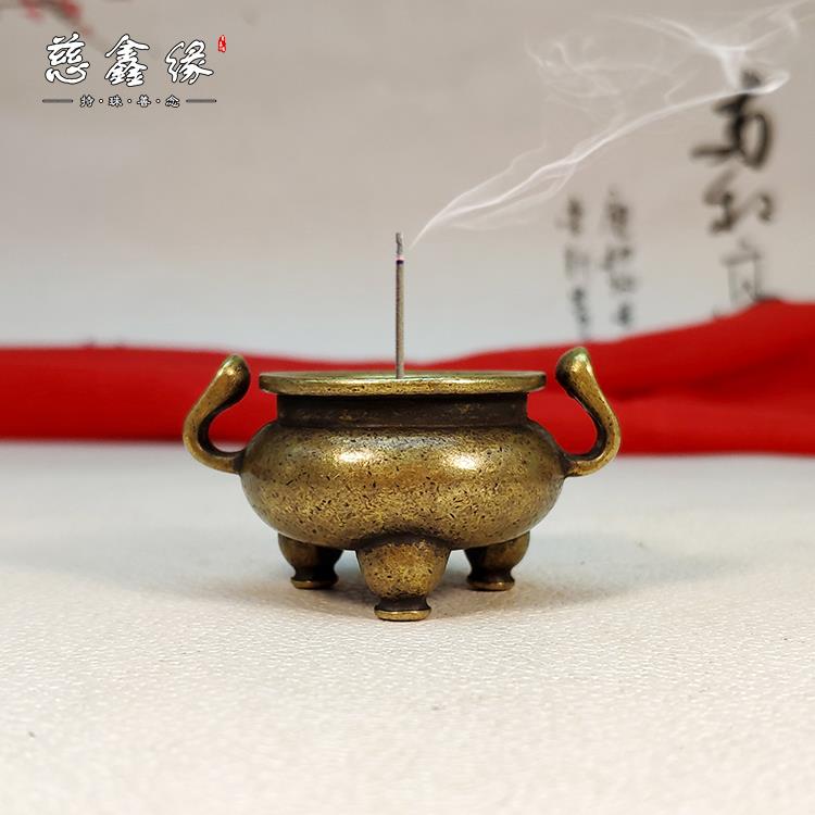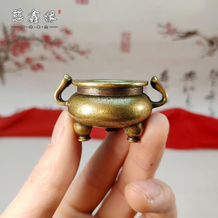 纯铜炉老铜铸迷你光身朝冠耳铜炉古玩铜器琴书侣炉仿古缸式熏香炉