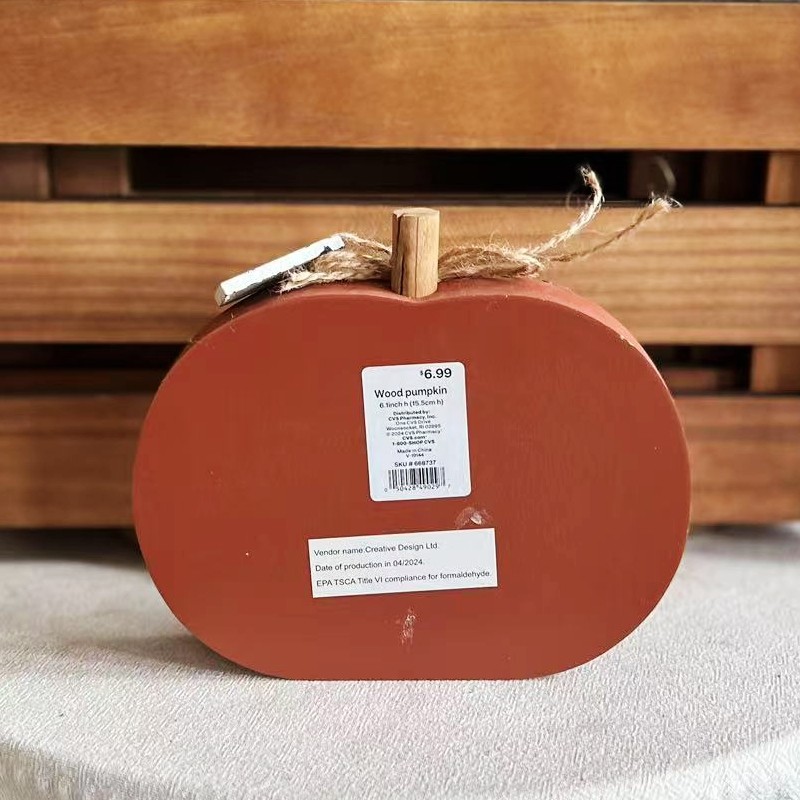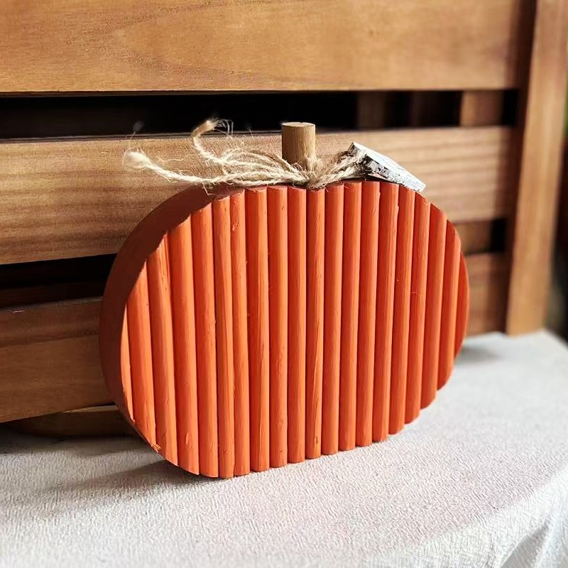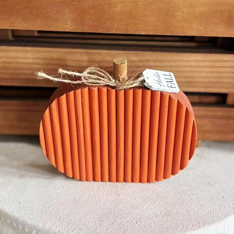 外贸原单 美式乡村风格复古木质橙色竖纹南瓜造型摆件摆饰