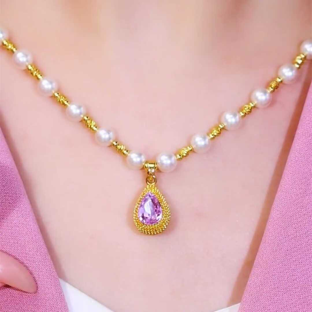 轻奢高级感金丝珍珠项链女紫色榴莲吊坠不掉色锁骨链百搭网红