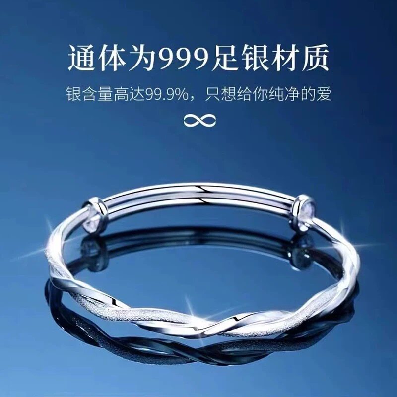 足银999繁花似锦手镯实心莫比乌斯繁花女学生款七夕情人节送女友