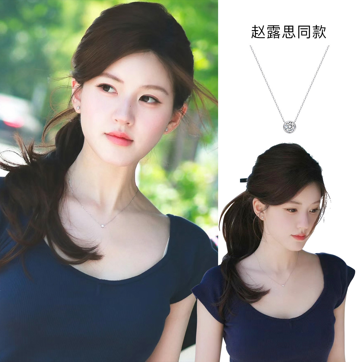 MITHAOL明星同款鼻屎钻项链女 1克拉莫桑石泡泡锁骨链闺蜜银镀18K