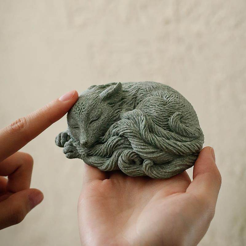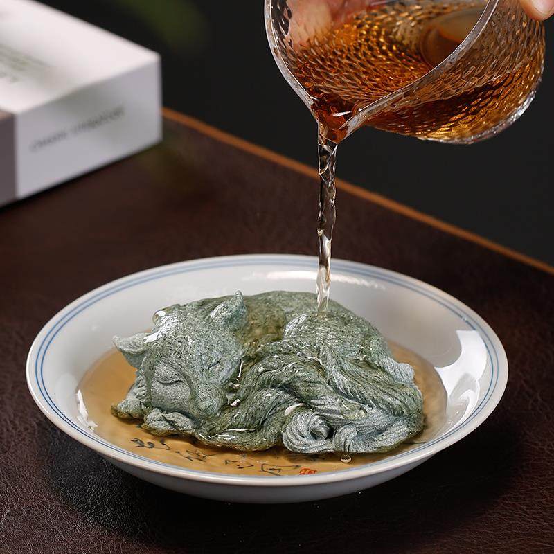 新中式九尾灵狐茶宠摆件创意手把件狐狸微景观盆栽鱼缸造景装饰品