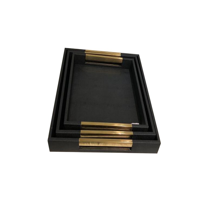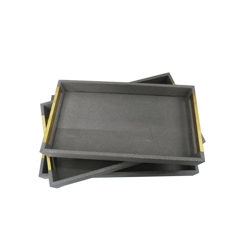 现代轻奢白色皮托盘摆件新中式样板房售楼处茶几长方形收纳盘饰品